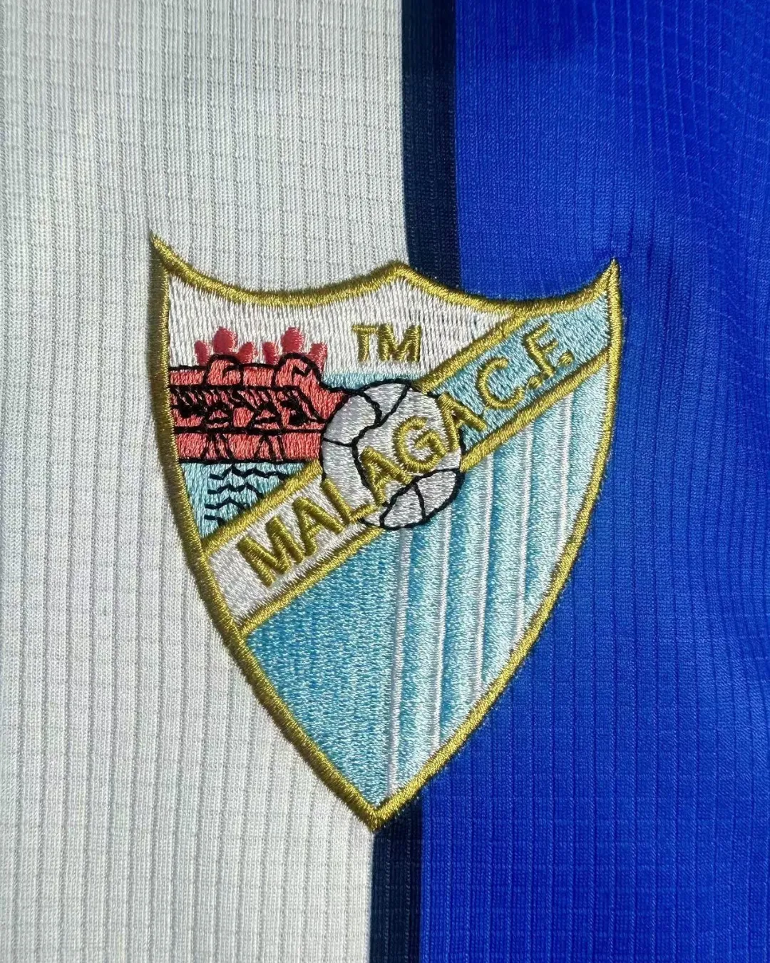 Embroidered Málaga CF crest and Kelme branding