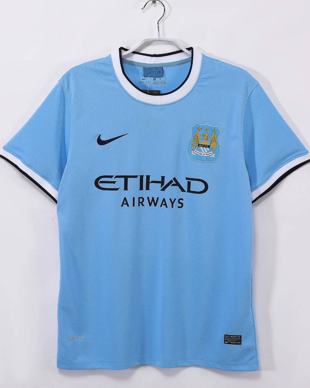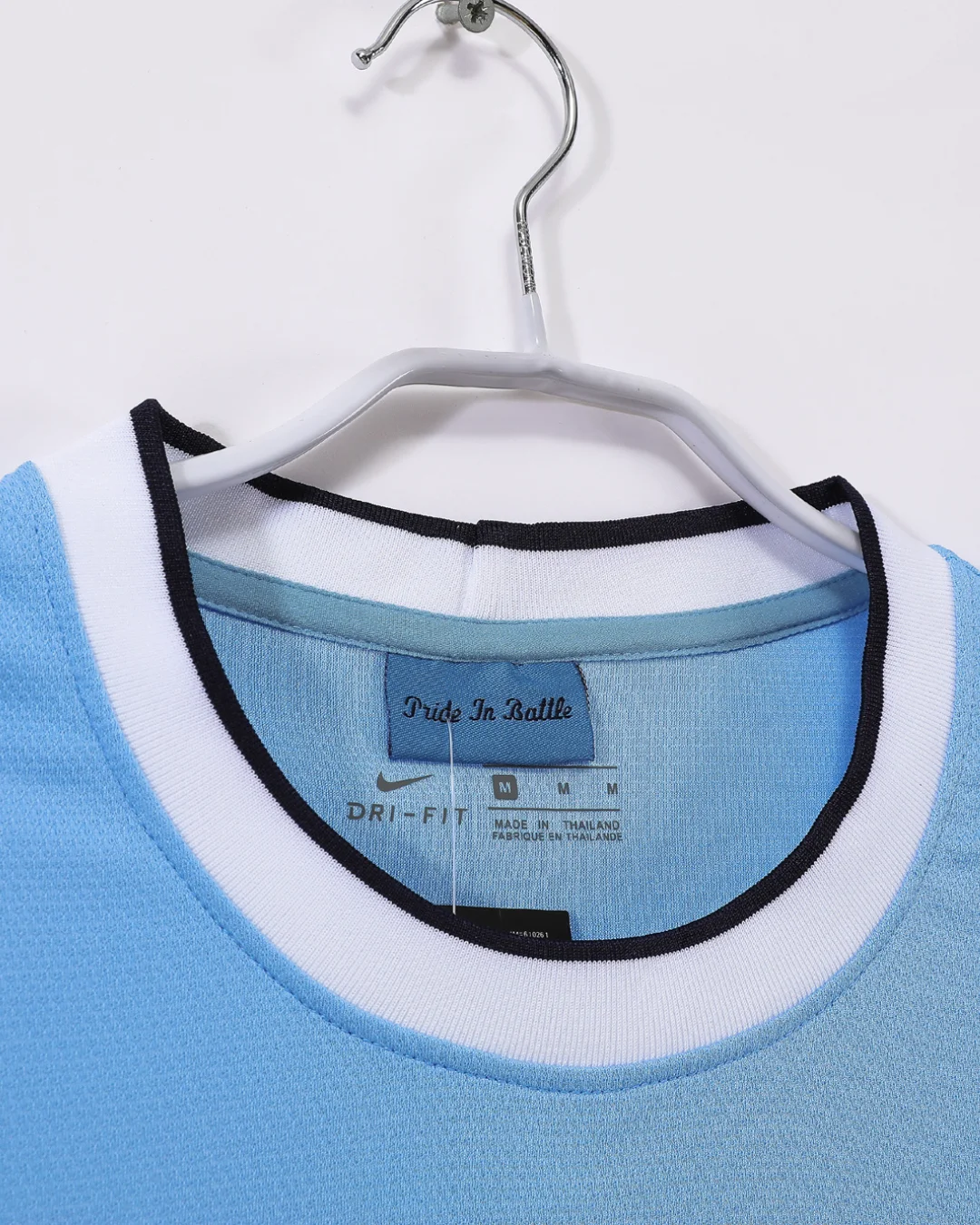 Celebrate Manchester City’s breakthrough 2013/14 season with the iconic Manchester City Home Jersey, the club’s first-ever Nike kit that marked the beginning of a new era of success. The jersey features the signature sky blue color, complemented by a classic white ribbed crew neck and cuffs with subtle dark blue trim, a nod to the Manchester City’s earliest kits in 1892.