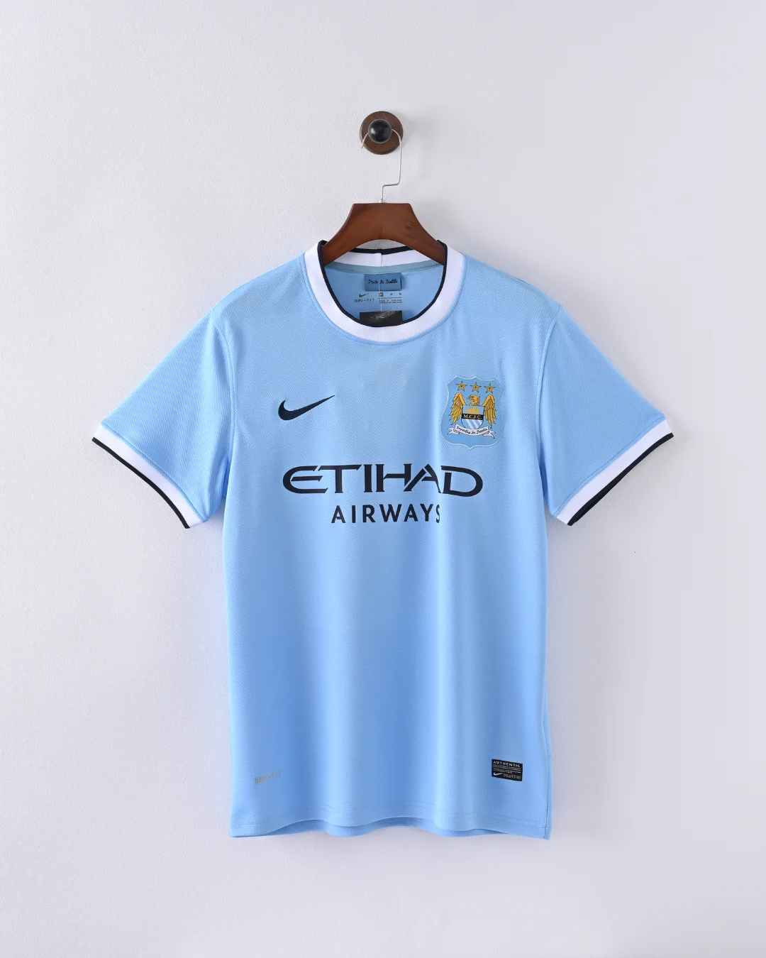 The Manchester City 2013/14 Home Jersey is a modern classic that celebrates a historic season for the club, marking their triumphant Premier League and League Cup double under Manuel Pellegrini. This shirt was the first Manchester City home kit produced by Nike, ushering in a new era with a clean, elegant design that pays homage to the club’s rich heritage.