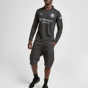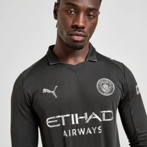 The Manchester City 2025/26 Away Stadium Jersey (Long Sleeve) by Puma is a sophisticated tribute to the club’s earliest kit from 1884, reimagined with a modern yet timeless design. This long-sleeve jersey features a bold all-black base with striking metallic silver details, including the club crest and Puma logos, providing an elegant contrast that honors Manchester City’s deep-rooted legacy.