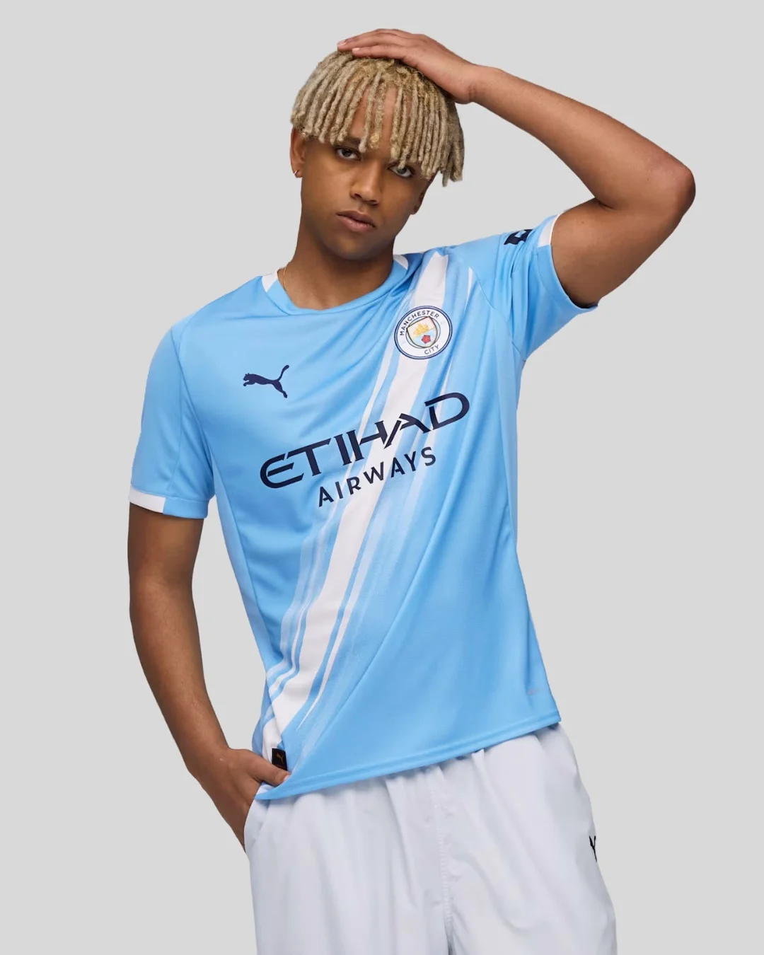 Celebrate a bold new chapter in Manchester Cityβs history with the 2025/26 Home Stadium Jersey, crafted by PUMA. For the first time ever, the iconic diagonal sashβpreviously a hallmark of Cityβs away kitsβtakes center stage on the home shirt, creating a striking visual that bridges generations of fans. Set against the unmistakable Sky Blue base, the white sash pays homage to club legends from the 1970s and recent eras, symbolizing Cityβs unique identity and innovative spirit.