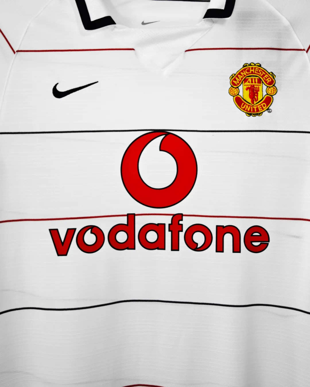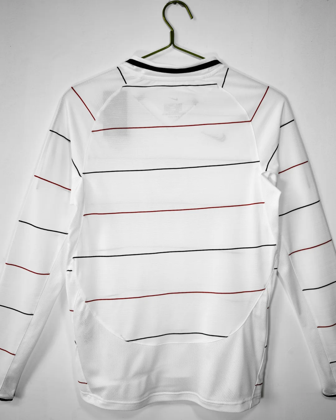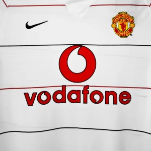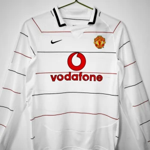 Celebrate the iconic 2003/04 season with the authentic Manchester United Third Jersey – Long Sleeve, a classic Nike design that combines bold style with superior comfort. This striking jersey features a dominant white base with red and black pinstripes, embodying the fierce and competitive spirit of the Red Devils during a memorable Champions League campaign.