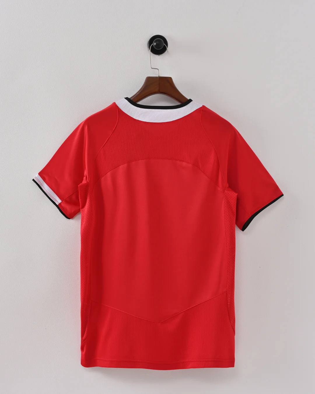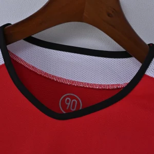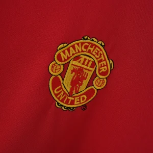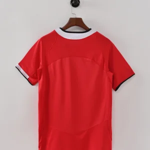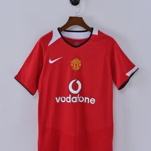 The MANCHESTER UTD 04/06 HOME JERSEY is a classic football shirt that represents an exciting era for the Red Devils. Manufactured by Nike, this jersey features the traditional and iconic red base with subtle tonal patterns along the front, paired with black trim on the collar and sleeve cuffs, creating a sharp and timeless look.