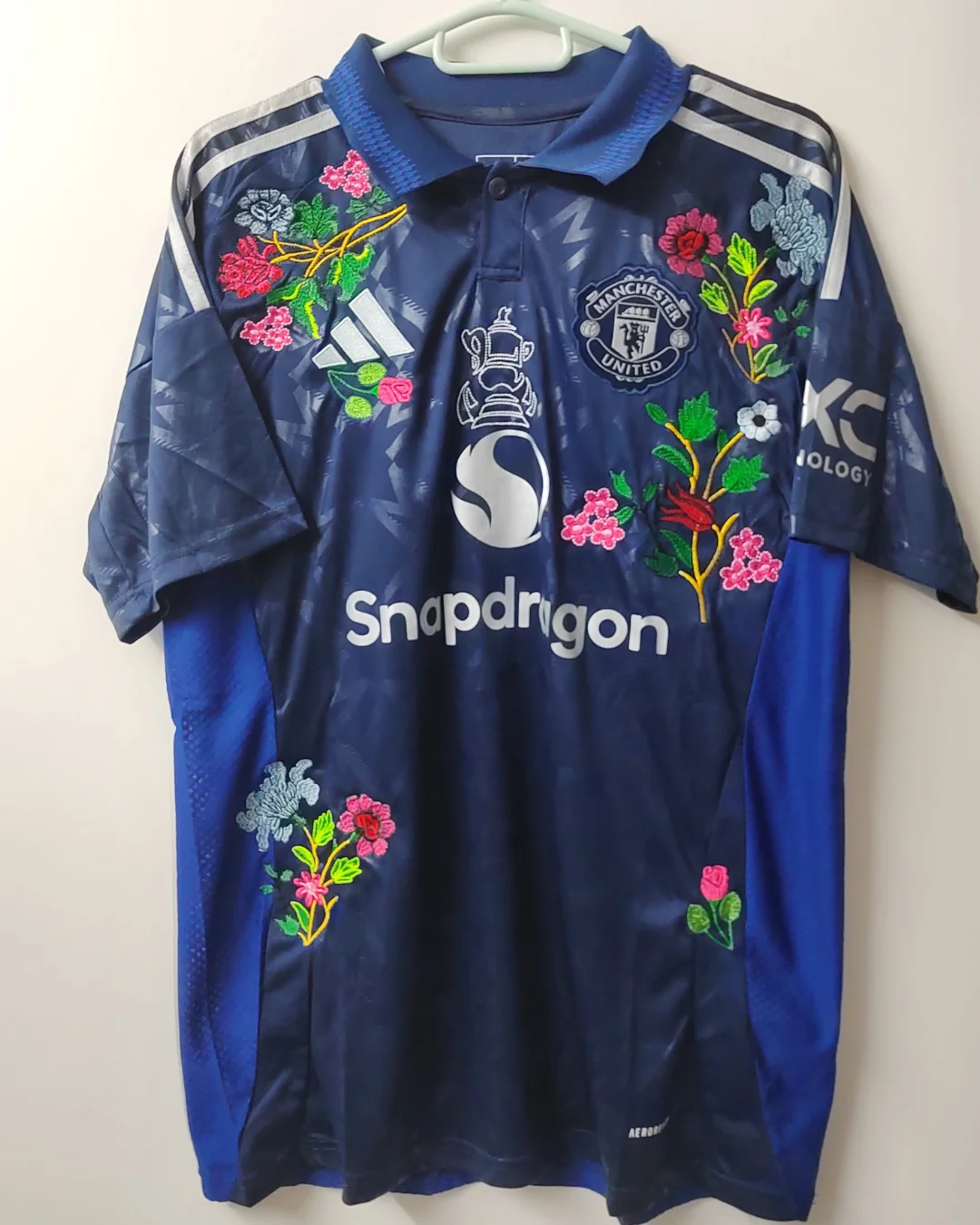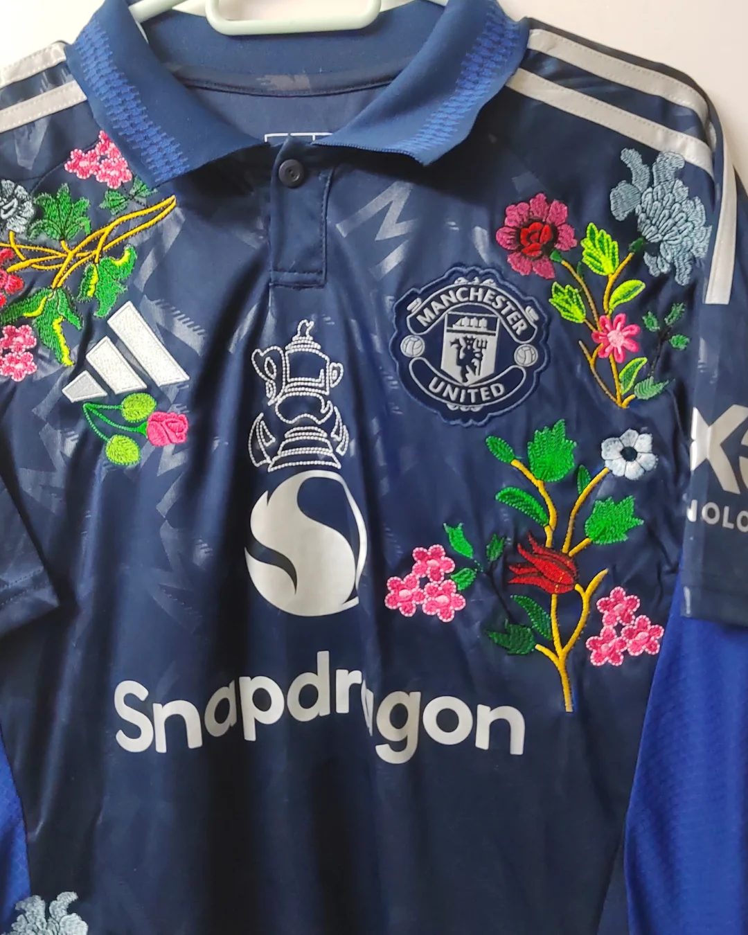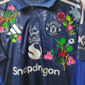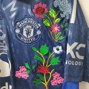 Each embroidered jersey is crafted using the original floral-stitch style pioneered by TheFootballGal, a globally loved creative twist on classic kits.
