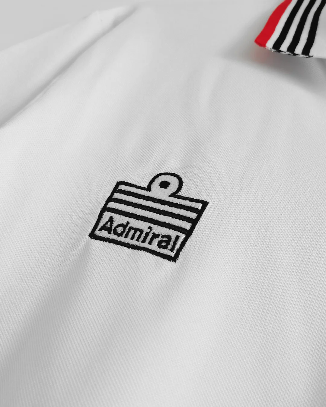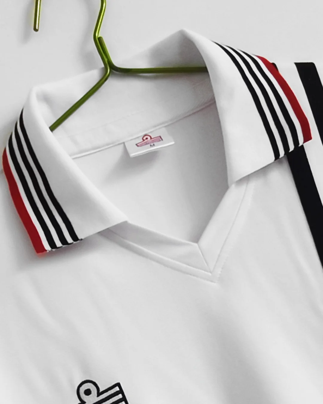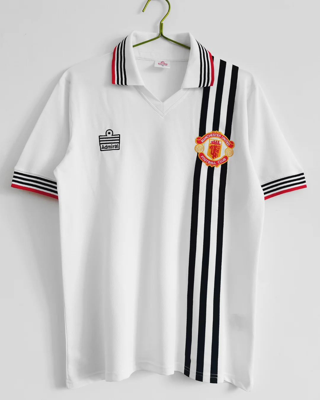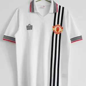 Step back into the classic era of Manchester United with the 1975/80 Away Jersey, a timeless representation of the club’s identity during the mid to late 1970s. Manufactured by Admiral, this jersey epitomizes the vintage football style and simplicity that defined the period. The jersey features a clean white base accented with classic red and black trims, embodying the traditional colors of Manchester United with striking simplicity