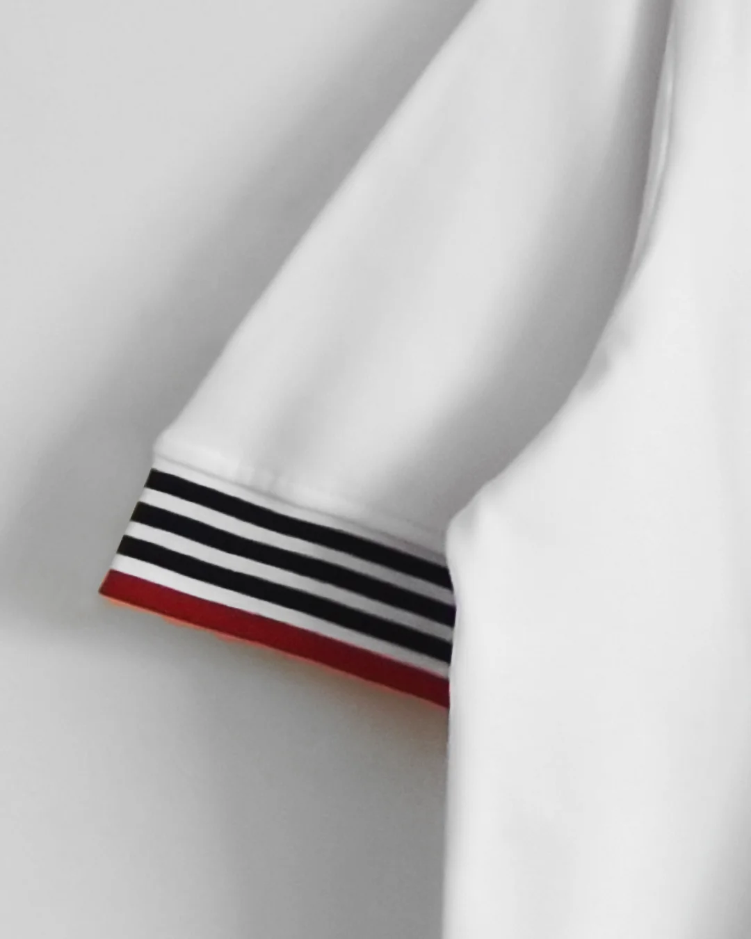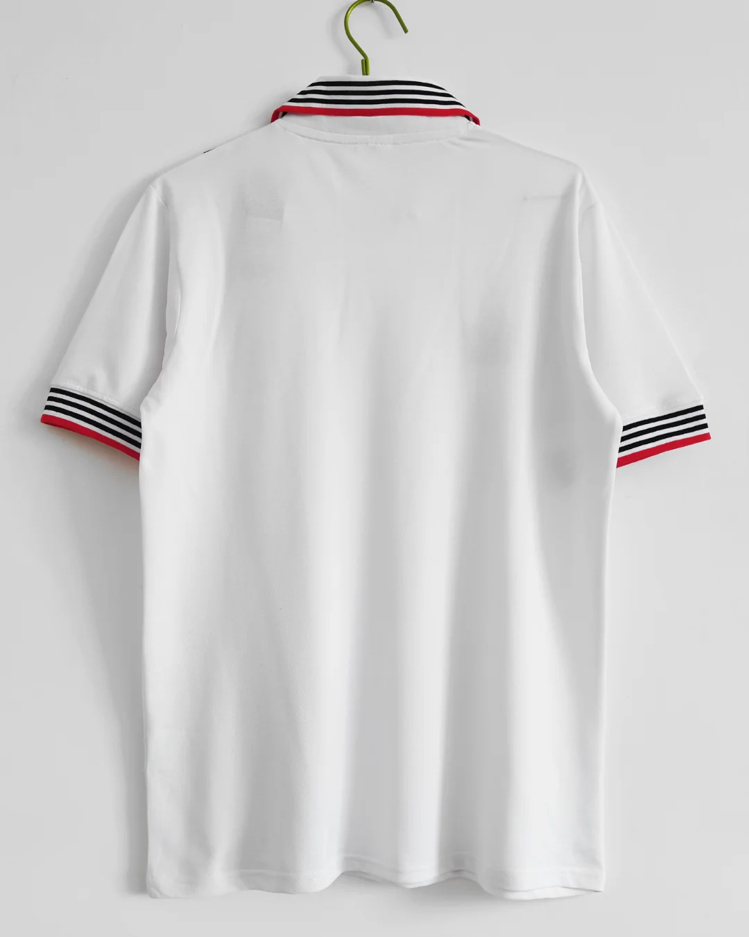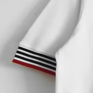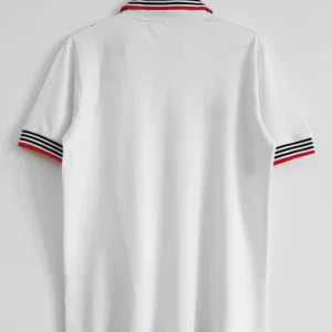 Step back into the classic era of Manchester United with the 1975/80 Away Jersey, a timeless representation of the club’s identity during the mid to late 1970s. Manufactured by Admiral, this jersey epitomizes the vintage football style and simplicity that defined the period. The jersey features a clean white base accented with classic red and black trims, embodying the traditional colors of Manchester United with striking simplicity