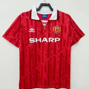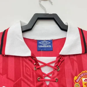 Relive the start of Manchester United’s Premier League dominance with the Manchester Utd 92/94 Home Jersey, a classic Umbro shirt worn during the club’s 1992/93 and 1993/94 title-winning seasons. This iconic home design comes in bold United red with a white contrast collar and a lace-up V-neck, capturing one of the most recognisable looks of early-1990s football. The shirt is closely associated with the era, when United moved from ending a long title drought to establishing themselves as the dominant force in English football.