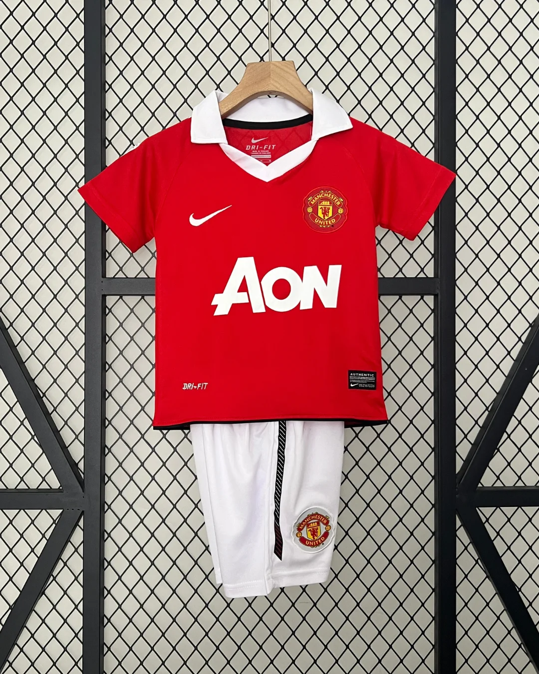 The Manchester United Kids 2010/11 Home Kit is a classic football kit featuring the iconic deep red shirt that has long been synonymous with the club’s home identity. This kit was manufactured by Nike, the club’s kit supplier at that time, and includes the home jersey and matching white shorts.