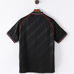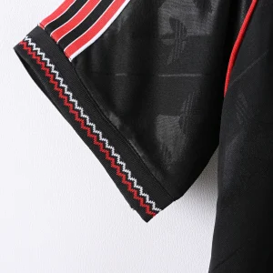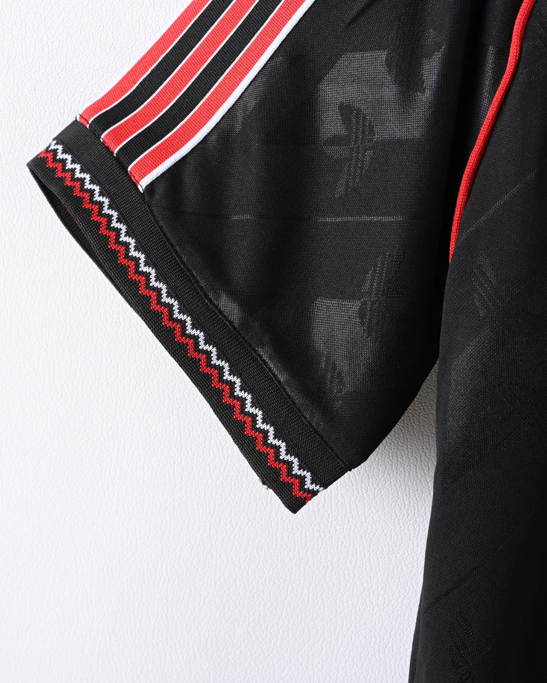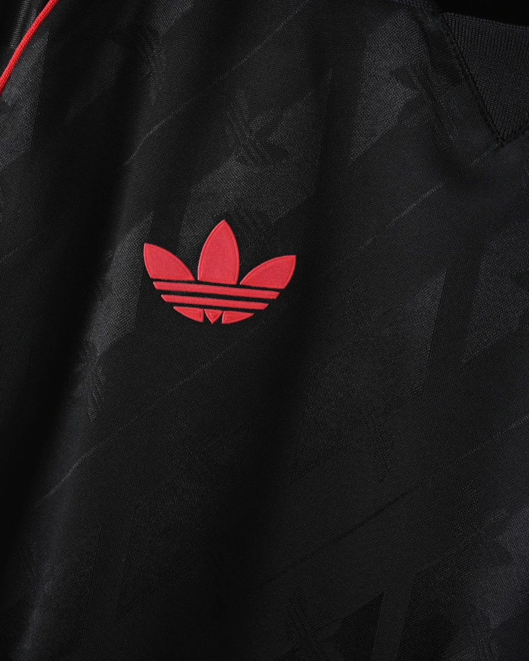 Show off your Manchester United pride off the pitch with the Manchester United LFSTLR Jersey, a stylish long-sleeve jersey from the Adidas Originals collection. Featuring a sleek black base with red and white trims, and a subtle mix of dull and shiny all-over graphic Trefoil patterns, this jersey perfectly blends modern streetwear with iconic club heritage.