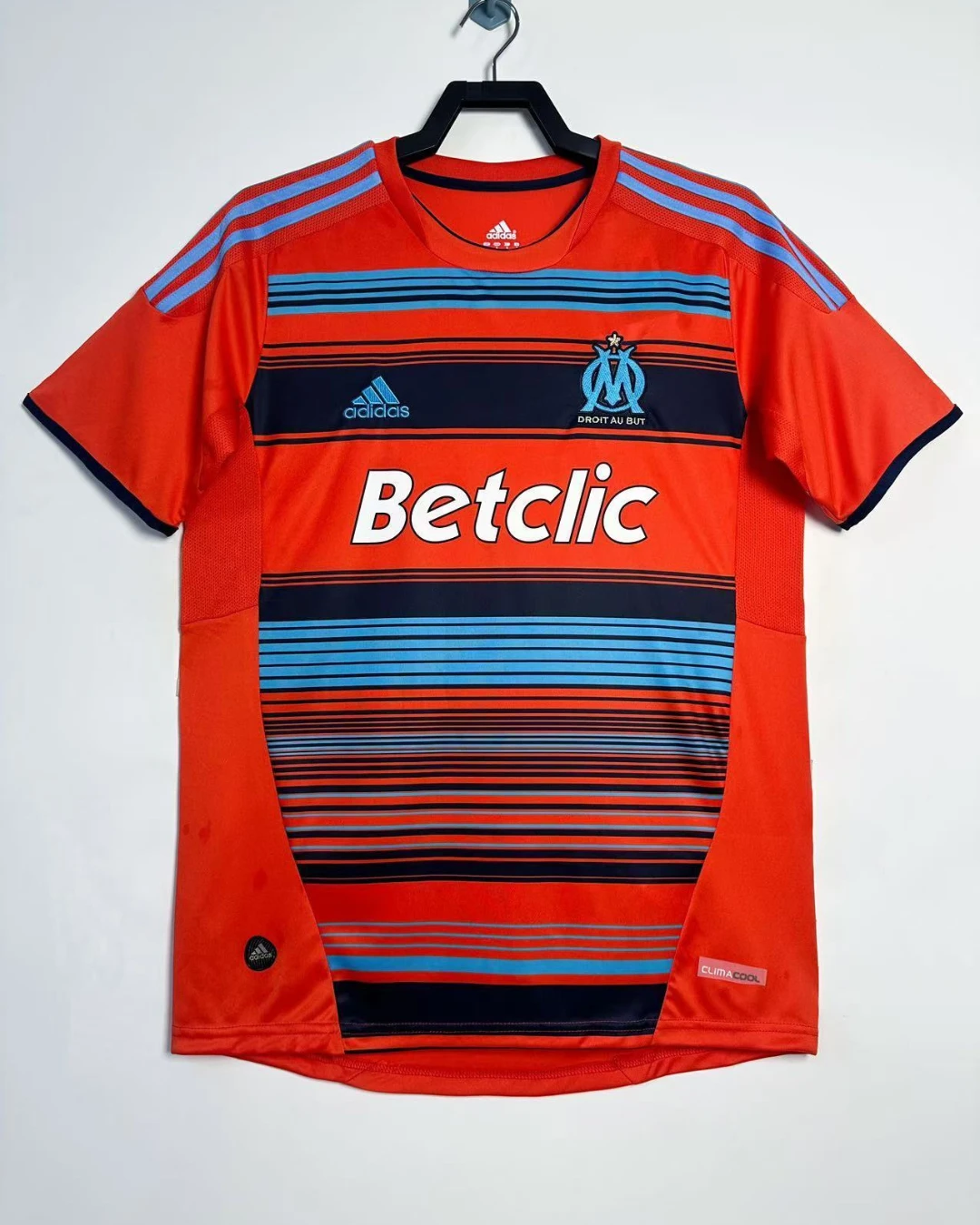 Marseille’s distinctive 2011/12 Third Jersey from Adidas powered their Coupe de la Ligue triumph, beating Lyon 1-0 in extra time while finishing 10th in Ligue 1, worn by Loïc Rémy, Mathieu Valbuena, André Ayew, and Didier Deschamps’ squad. The bold burnt orange base features navy and light blue trim accents, embroidered OM crest on the left chest, Adidas logo on the right, and crisp “Betclic” sponsor across the front for vibrant Velodrome atmosphere.