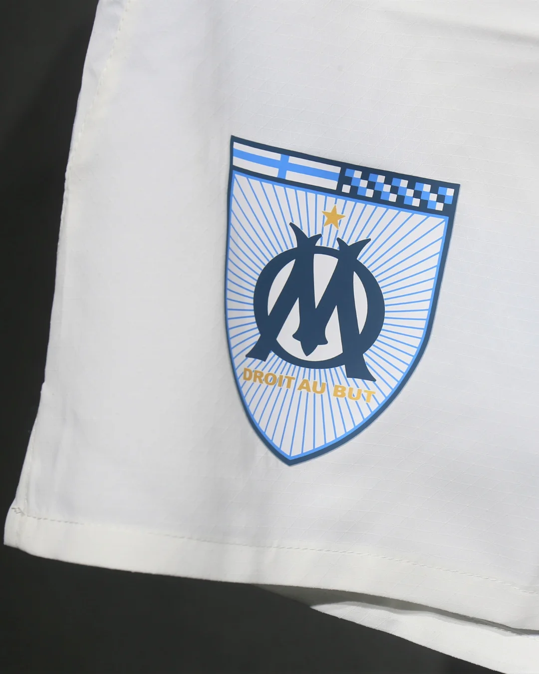 Heat-pressed Olympique de Marseille club crest and Puma logo