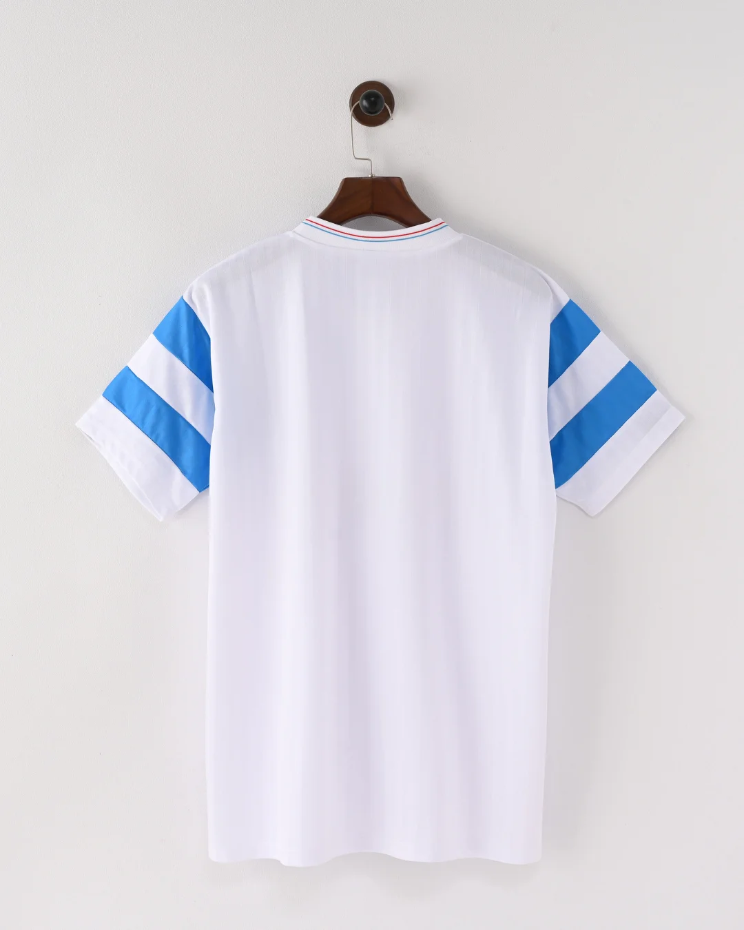 Celebrate one of Olympique de Marseille’s greatest football eras with the 90/91 Home Jersey, worn during the season the club won their third consecutive Division 1 title. This iconic jersey features a classic white base with blue detailing, embodying Marseille’s elegant and timeless style on the pitch.