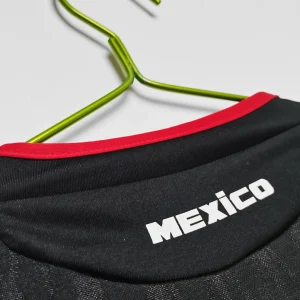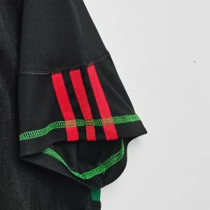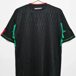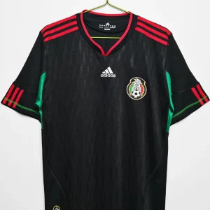 Show your support for El Tri with the official Mexico 2010 Away Jersey, designed by Adidas for the FIFA World Cup South Africa campaign. This sleek, modern away kit features a predominantly black base, enhanced with green and red accents reflecting Mexico’s vibrant national colors and football legacy.