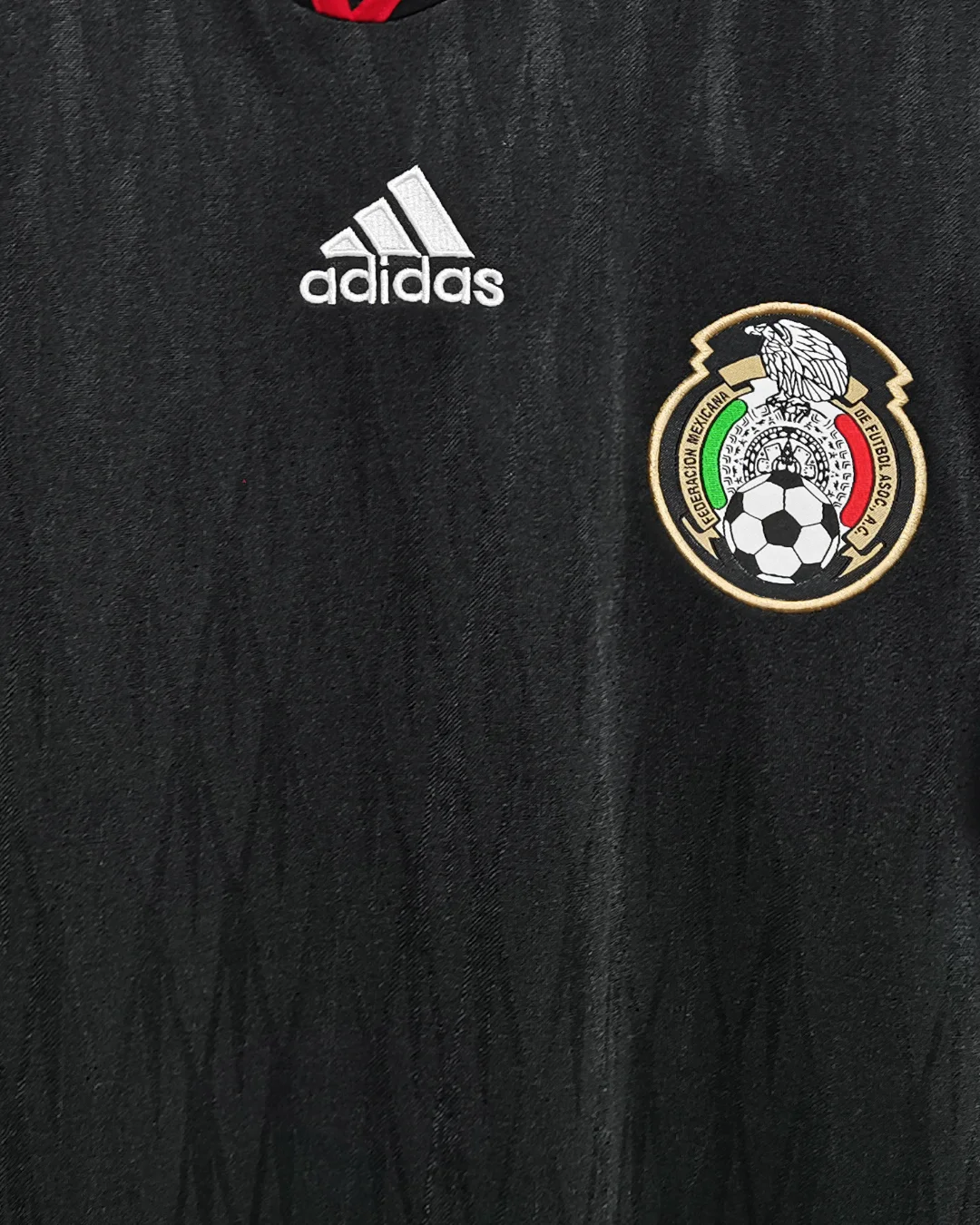 Embroidered Mexican Football Federation crest and Adidas logo on the chest