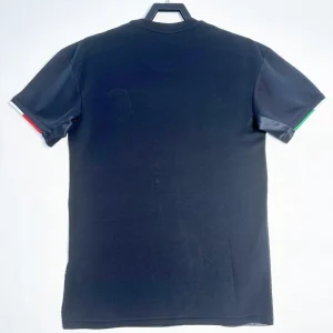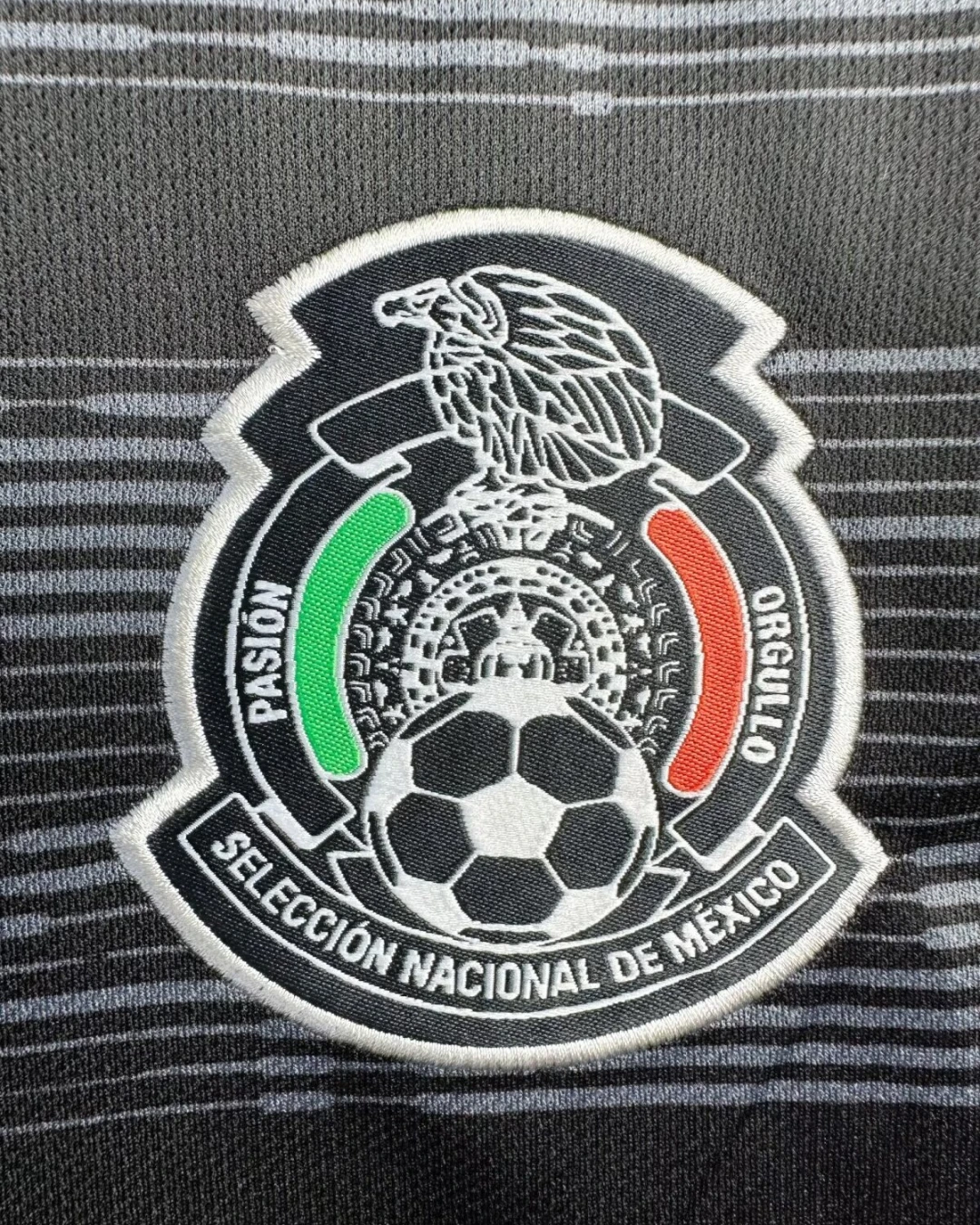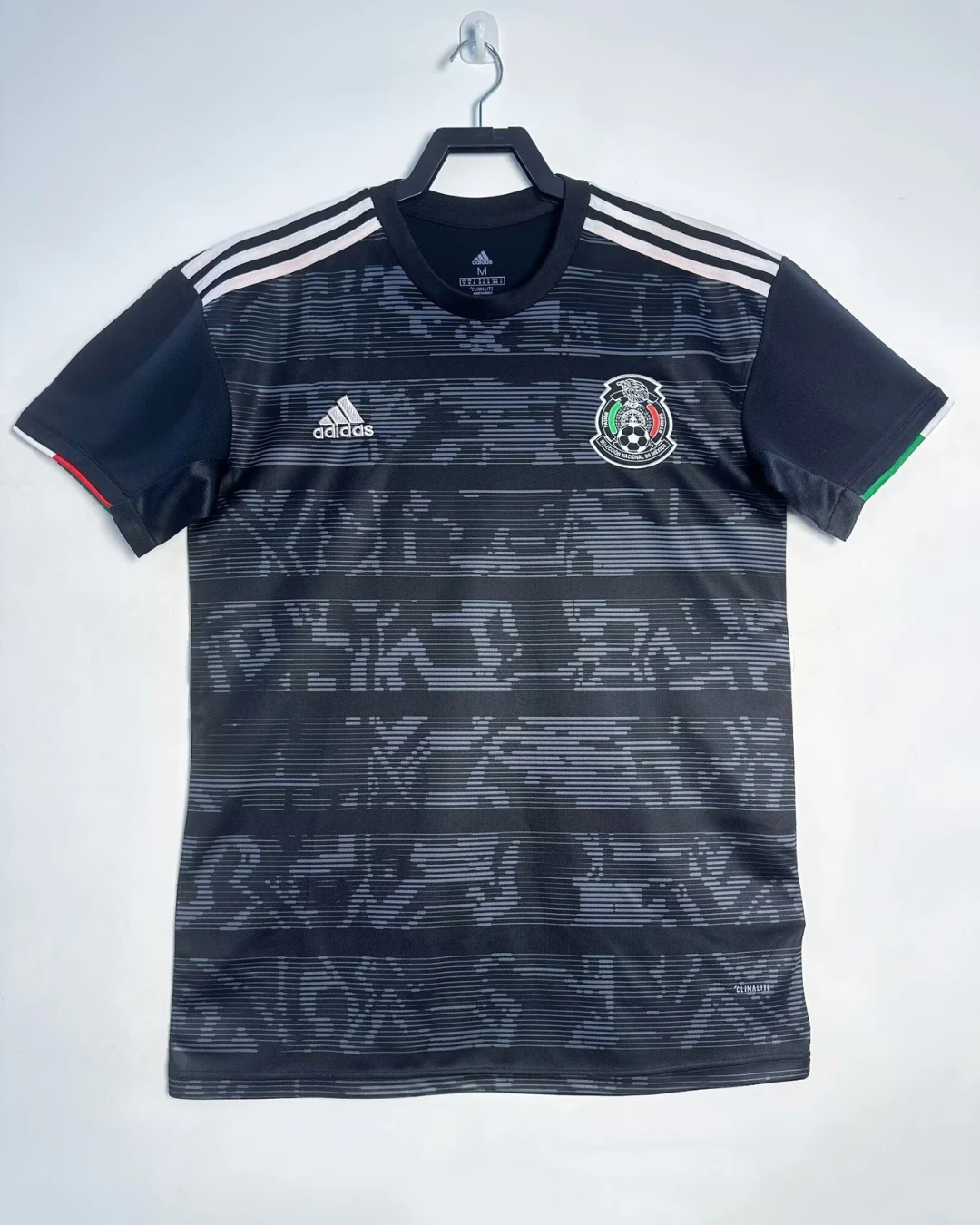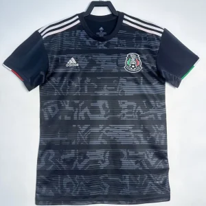 Mexico’s striking 2019 Home Jersey from Adidas powered Gerardo “Tata” Martino’s Gold Cup triumph and CONCACAF Nations League campaign, worn by Raúl Jiménez, Hirving Lozano, Andrés Guardado, and Javier “Chicharito” Hernández during their regional dominance. The innovative all-black base with intricate Aztec calendar-inspired pattern across the front features rounded crew neck collar, embroidered FMF eagle crest and Adidas logo, three stripes extending from shoulders, and subtle green/white/red accents on sleeves, revolutionary El Tri design marking Mexico’s first major all-black home kit