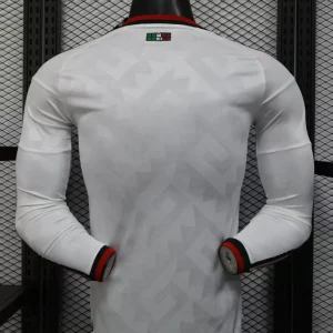 Fuel El Tri’s passionate World Cup charge with the Mexico 2026 Away Authentic Jersey – Long Sleeves from Adidas. Featuring a pristine white base with subtle geometric “grecas” patterns inspired by ancient Mesoamerican motifs and traditional Mexican architecture, it incorporates dark green and red flag accents plus a comprehensive gray overlay design symbolizing stepped facades of classic structures. Engineered from 100% recycled polyester with Climacool+ technology, this long-sleeve jersey delivers superior moisture-wicking, breathability, and a slim authentic fit for elite match performance. Essential for fans channeling Mexico’s unyielding pride and cultural fervor.