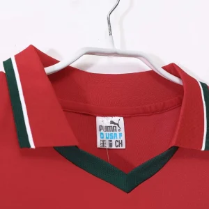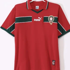 Celebrate the distinctive style of the Morocco national team with the 1998 Third Jersey, an authentic Puma design that stands out with its bold red base and a thick green stripe encircling the chest. This kit reflects Morocco’s proud football heritage and unique identity on the international stage during the 1998 FIFA World Cup and related competitions.