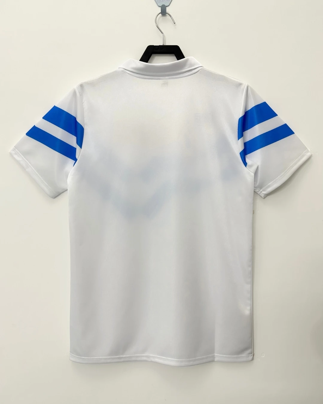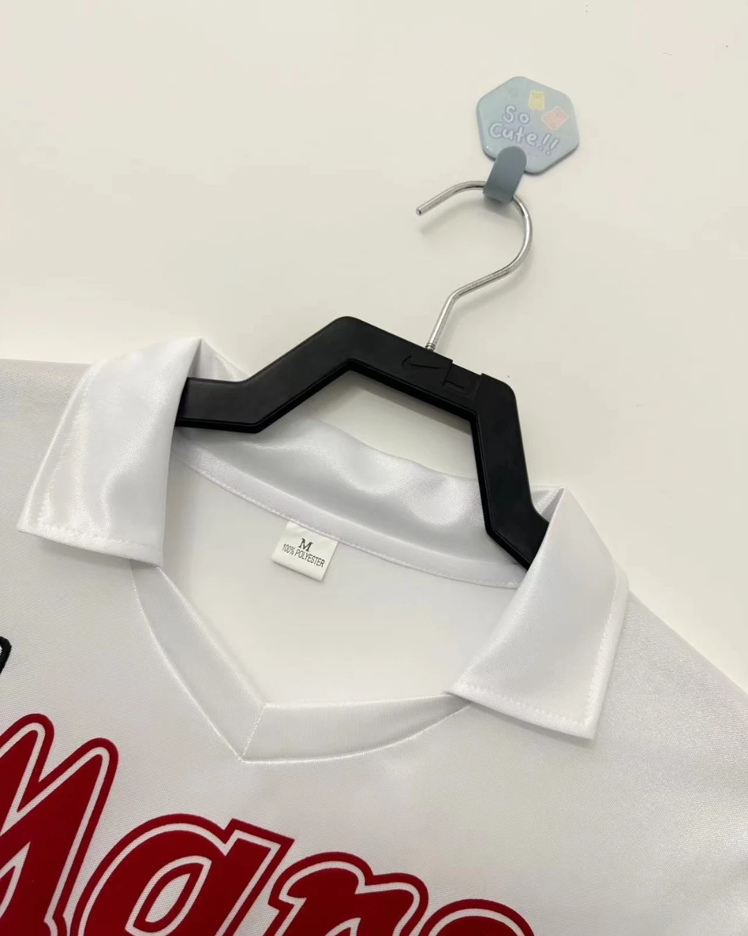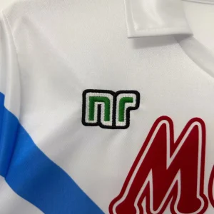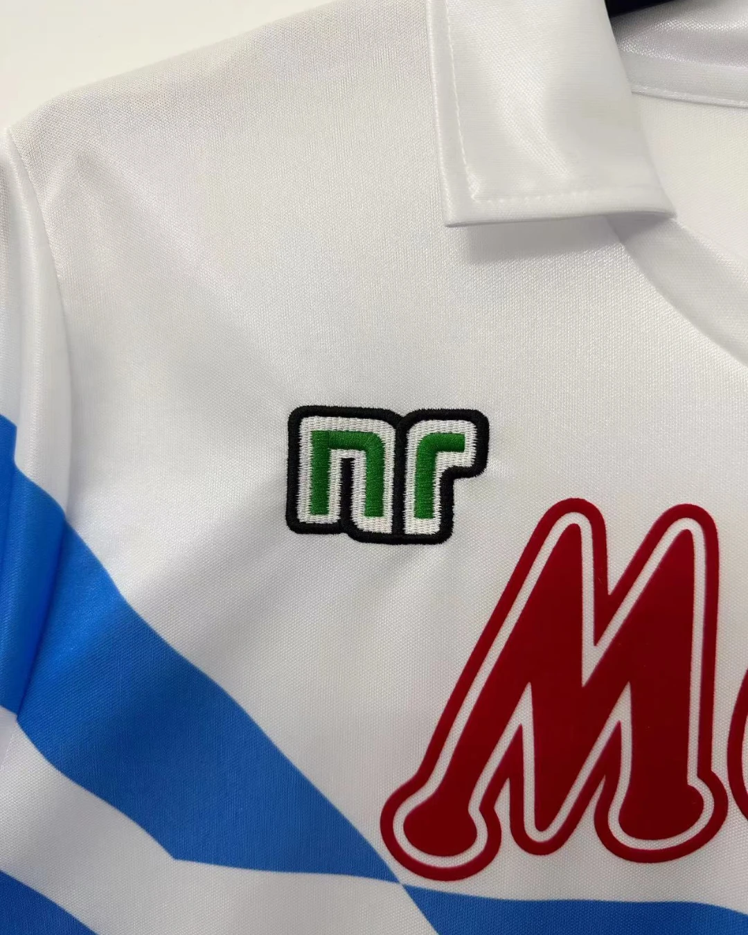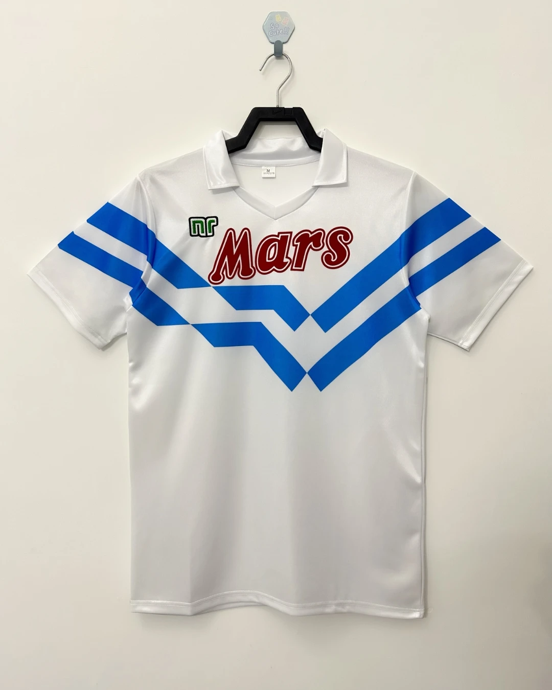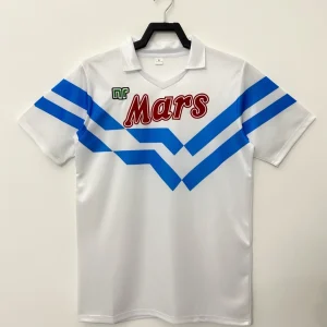 Bring back Napoli’s legendary Maradona era with the Napoli 89/90 Away Jersey, a cult classic from the season the club won its second Serie A title. This iconic away shirt is remembered for its clean white base, bold blue detailing, and the famous MARS sponsor, making it one of the most recognizable vintage Napoli kits ever made. The jersey was produced by Ennerre (NR), the Italian brand that outfitted Napoli during that period, and it was worn in the triumphant 1989/90 campaign by Diego Maradona, along with stars like Careca and Gianfranco Zola.