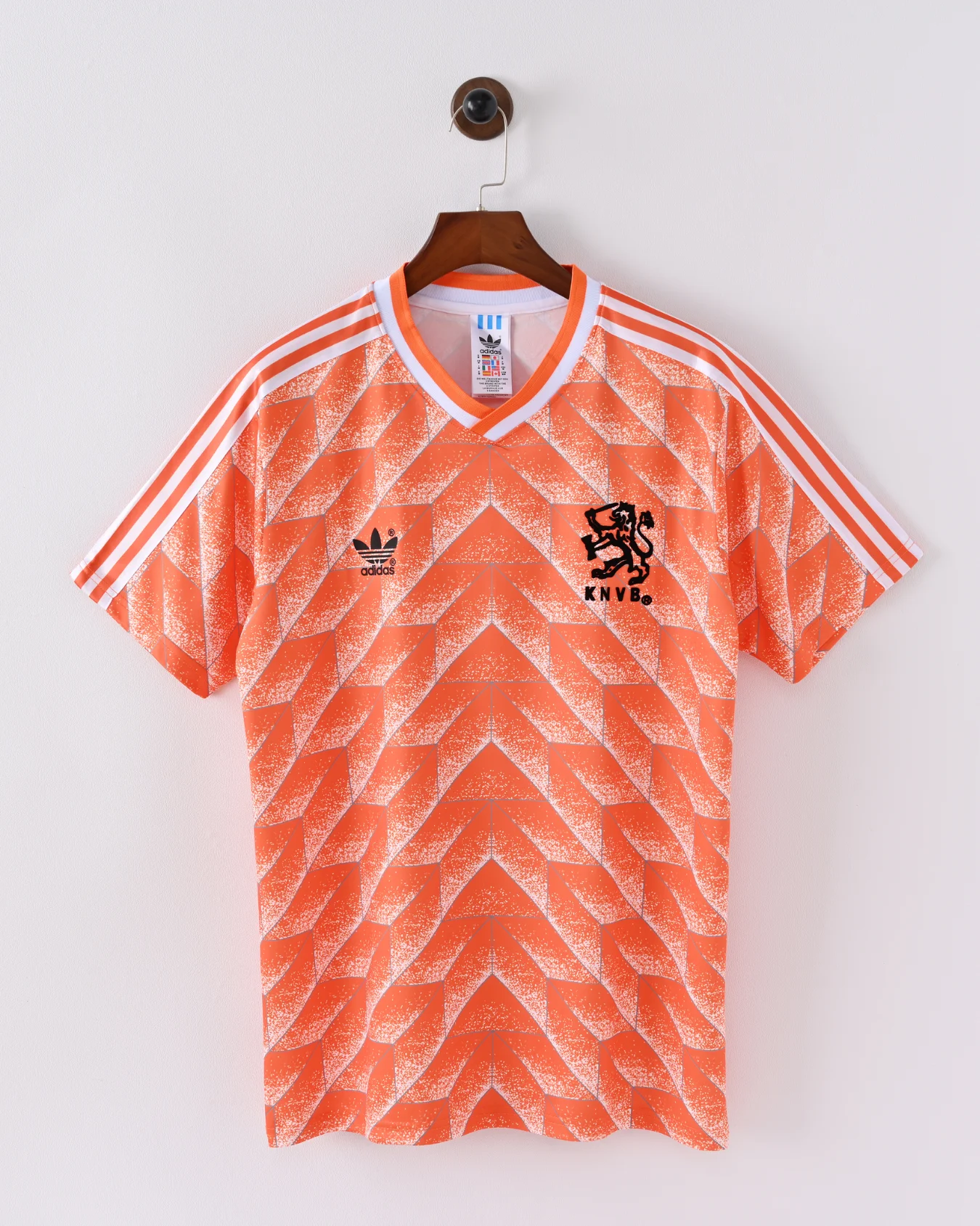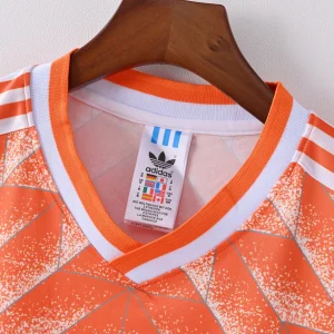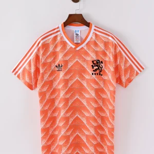Step into footballing history with the Netherlands 1988 Home Jersey—an icon as bold and intelligent as the team that wore it. With its unmistakable geometric design in a rich shade of Oranje, this jersey defined an era where art and sport collided under the brilliance of legends like Ruud Gullit and Marco van Basten.