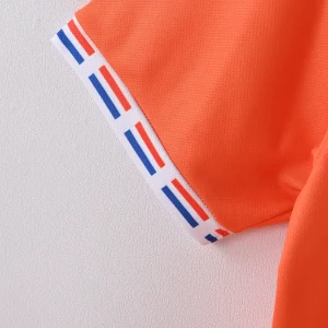 Draped in the unmistakable deep Oranje hue, this piece features clean white accents and subtle trim that reflects both tradition and innovation. The lion crest, stitched with precision, evokes pride, passion, and power — qualities that defined the Dutch side of that summer.