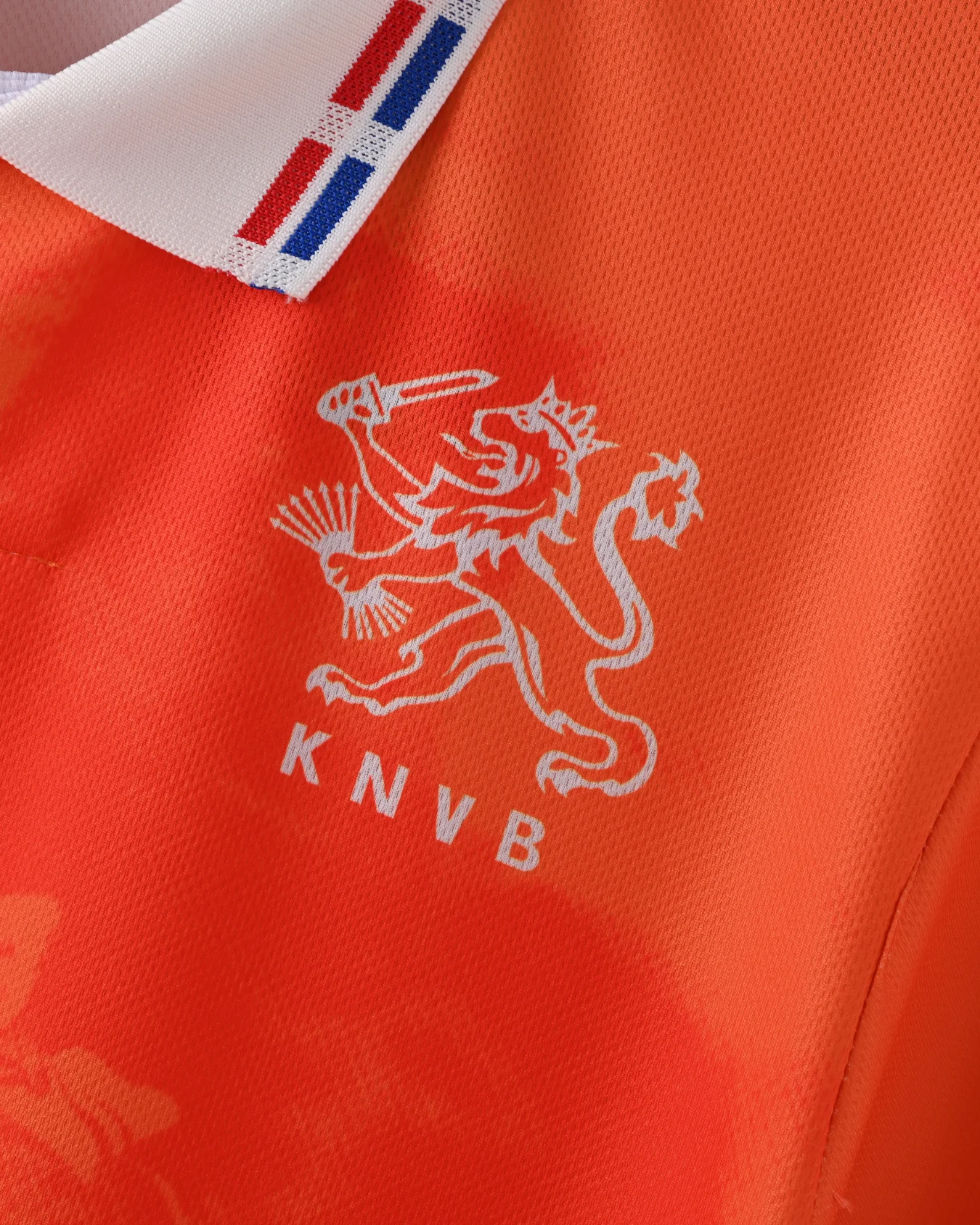 Embroidered KNVB crest and Umbro insignia with period-accurate detailing