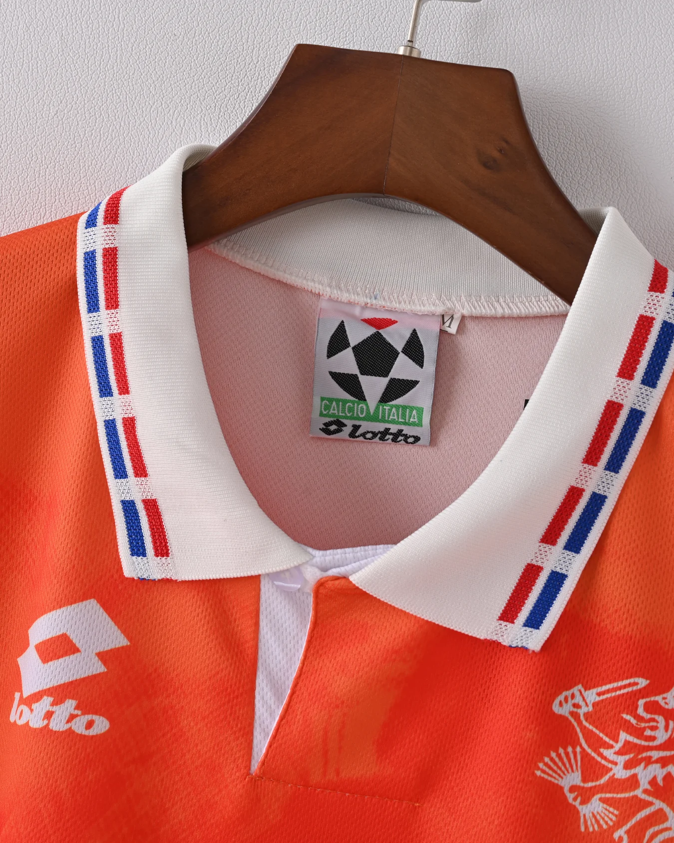 Embody the elegance and fire of Dutch football in the mid-90s with the Netherlands 1996 Home Jersey — a timeless piece that captures the bold simplicity of a golden footballing generation. Worn by legends like Dennis Bergkamp, Clarence Seedorf, and Patrick Kluivert during a defining era, this jersey stands as a testament to a nation that plays the beautiful game with unmatched flair and discipline.