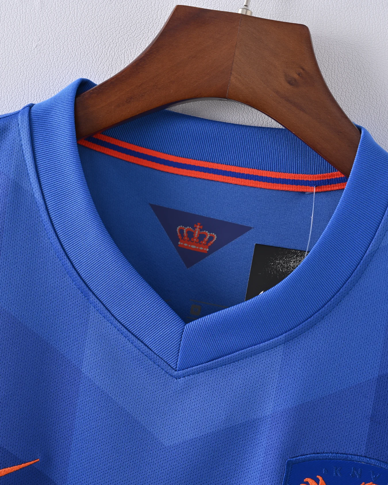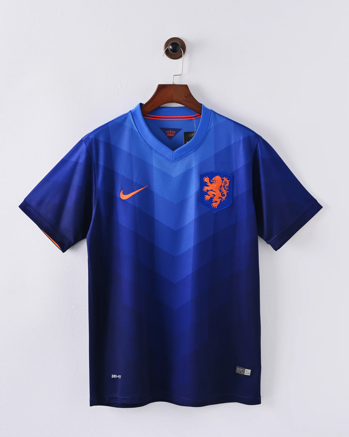 The Netherlands 2014 Away Jersey is a striking reminder of a squad that reignited the world’s admiration for Dutch football — bold, fast, and fearless. Worn during the unforgettable run to the 2014 World Cup semi-finals, this deep royal blue design radiates confidence, featuring vibrant orange accents that salute the national identity with modern edge.