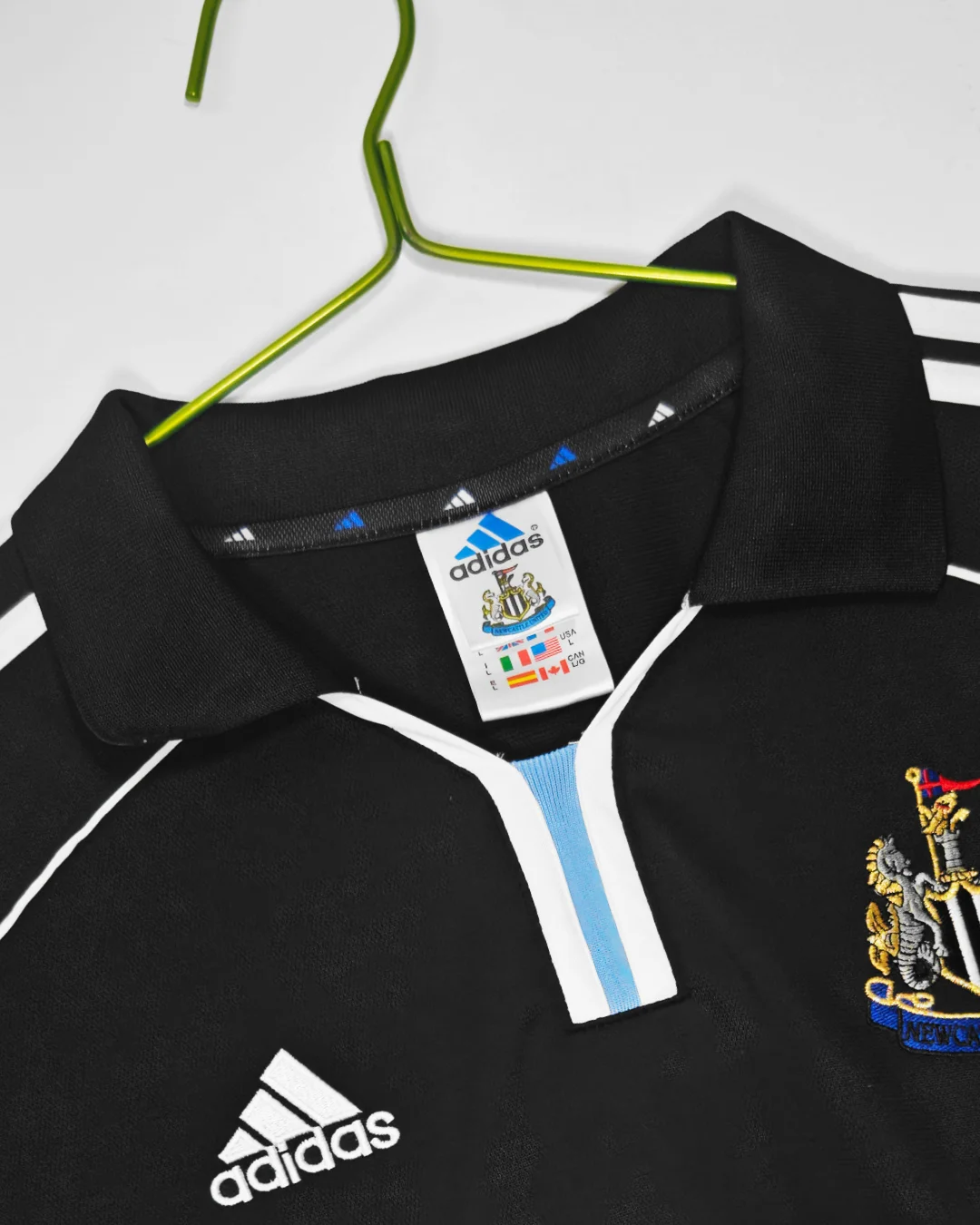 Step into the early 2000s with this classic Newcastle United 2000/01 Away Jersey, an authentic Adidas design that combines style and tradition. This rare away shirt features a predominantly black base accented with white and light blue trims, representing the club’s bold identity away from home during a competitive Premier League campaign.
