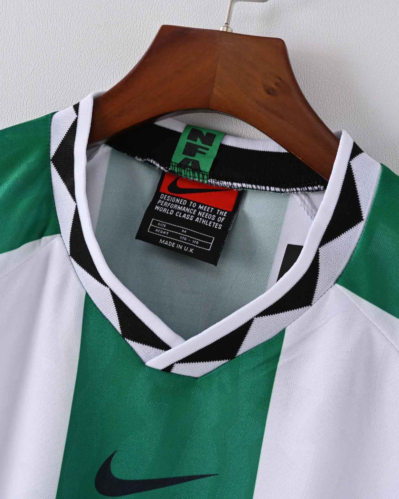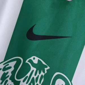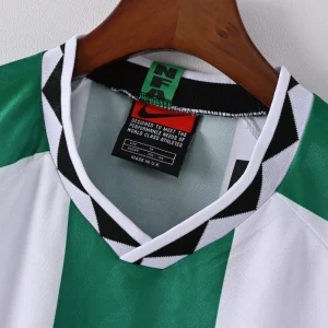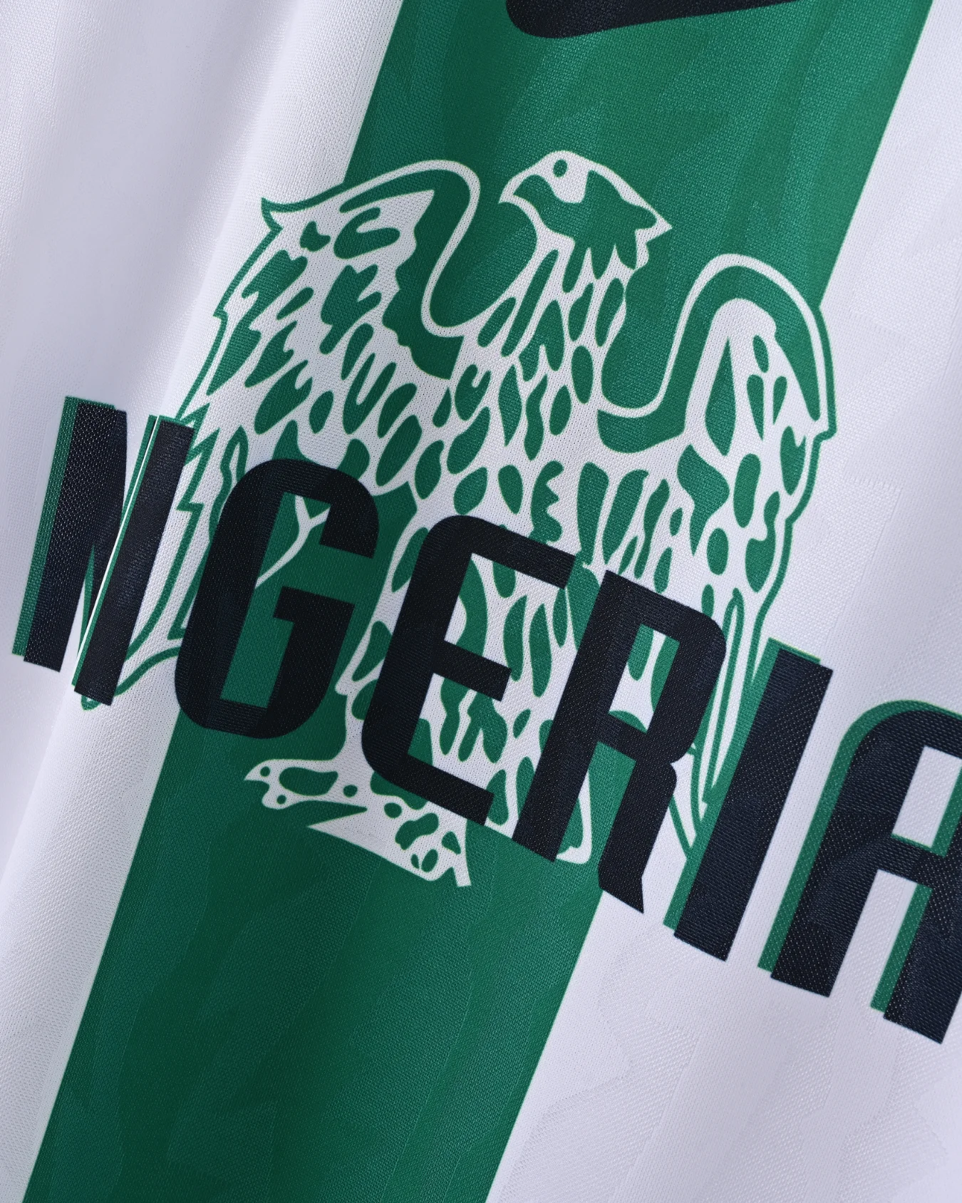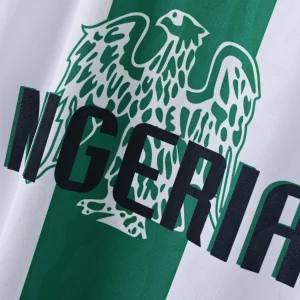 Featuring the striking deep green palette accented with crisp white details, the design channels the dynamic flair and fearless style that defined Nigeria’s football in the ’90s. With premium materials and era-specific craftsmanship, every stitch carries the legacy of legends like Jay-Jay Okocha and Nwankwo Kanu.