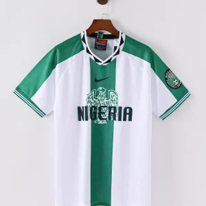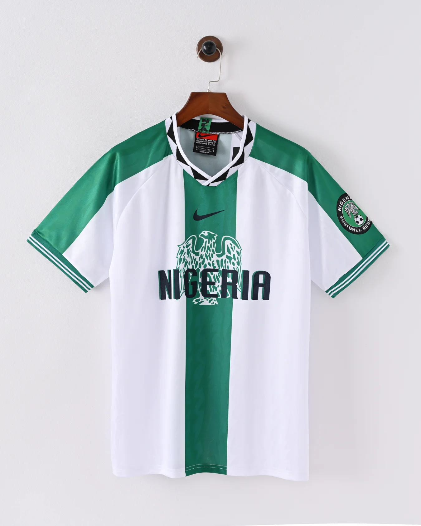 Celebrate the electrifying spirit of Nigeria’s golden generation with the 1996 Away Jersey—a bold symbol of triumph, pride, and unshakable national identity. Worn during a historic year that saw the Super Eagles stun the world at the Atlanta Olympics, this jersey embodies the energy and confidence of a team destined for greatness.
