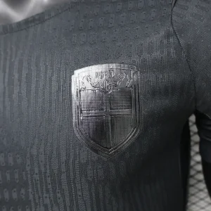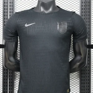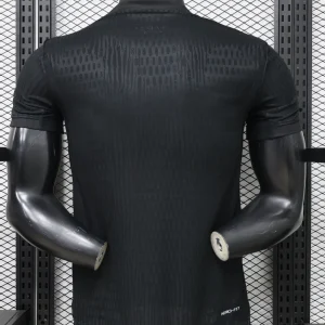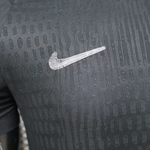The Norway 2026 WC Away Authentic Jersey goes all-in on a blackout look, giving the national team a sleek and modern World Cup identity. Designed by Nike, the shirt is rendered in all black, including the crest and Swoosh, with a subtle vertical ribbed texture across the torso and sleeves for a premium technical finish. Built for match-level performance, the authentic version uses Nike Aero-FIT technology and lightweight recycled polyester for excellent airflow and stretch.