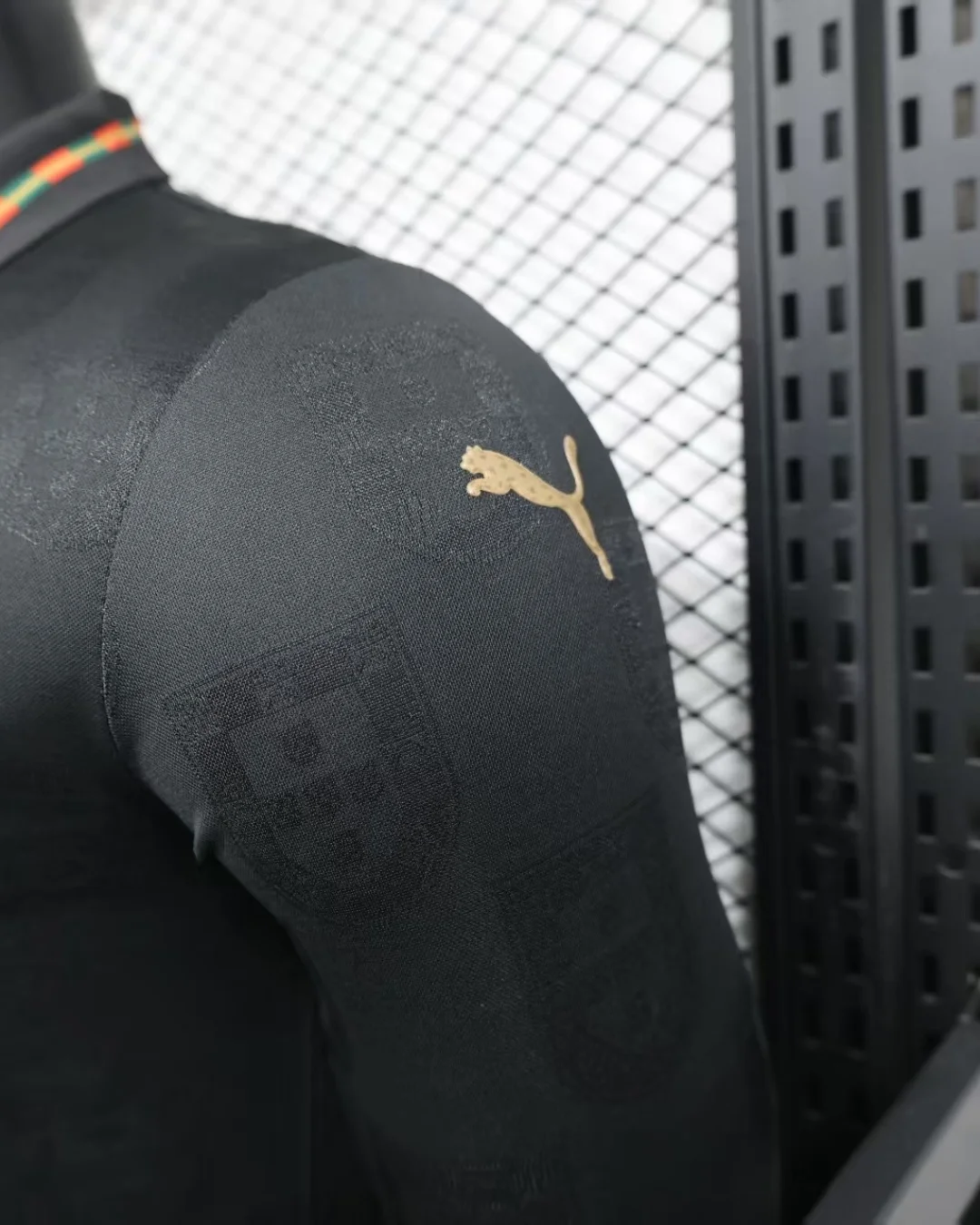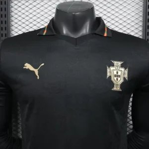 The Puma Portugal 25/26 Special Edition Authentic Long Sleeve Jersey honors football legend Eusébio, known as “Pantera Negra” (Black Panther), with a striking black base and shimmering gold accents, commemorating 60 years since he became Europe’s first Portuguese Ballon d’Or winner. This collector’s piece revives the original Puma King style worn by O Rei, featuring “Pantera Negra” scripting and a premium jacquard texture for a timeless tribute.
