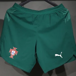 Support the Portuguese national team with the Portugal 25/26 Home Authentic Shorts, designed by PUMA to match the national team kit. These shorts sport a vibrant green color, inspired by Portugal’s lush landscapes and the iconic national emblem, embodying both tradition and freshness.