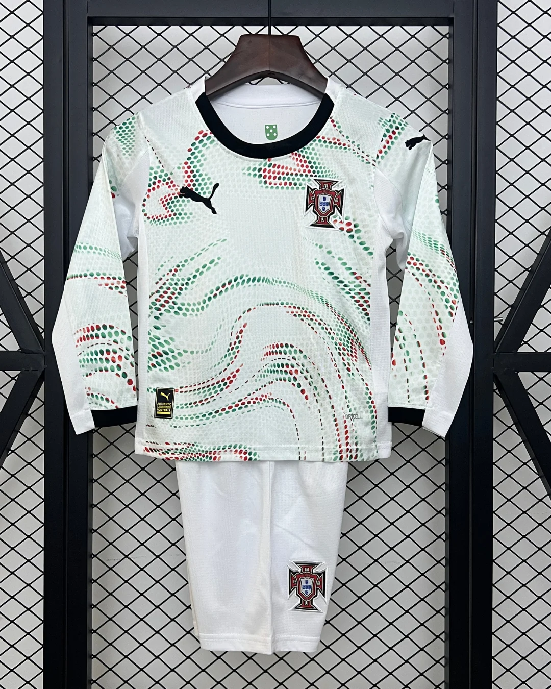 The Portugal Kids 2025 Away Kit by PUMA is an official, modern football kit designed for young supporters who want to cheer on the Portuguese National Team with style and comfort. This kit features a sleek and innovative design that reflects the rich football heritage and dynamic spirit of Portugal while providing optimal performance for football play or casual wear.