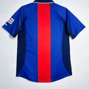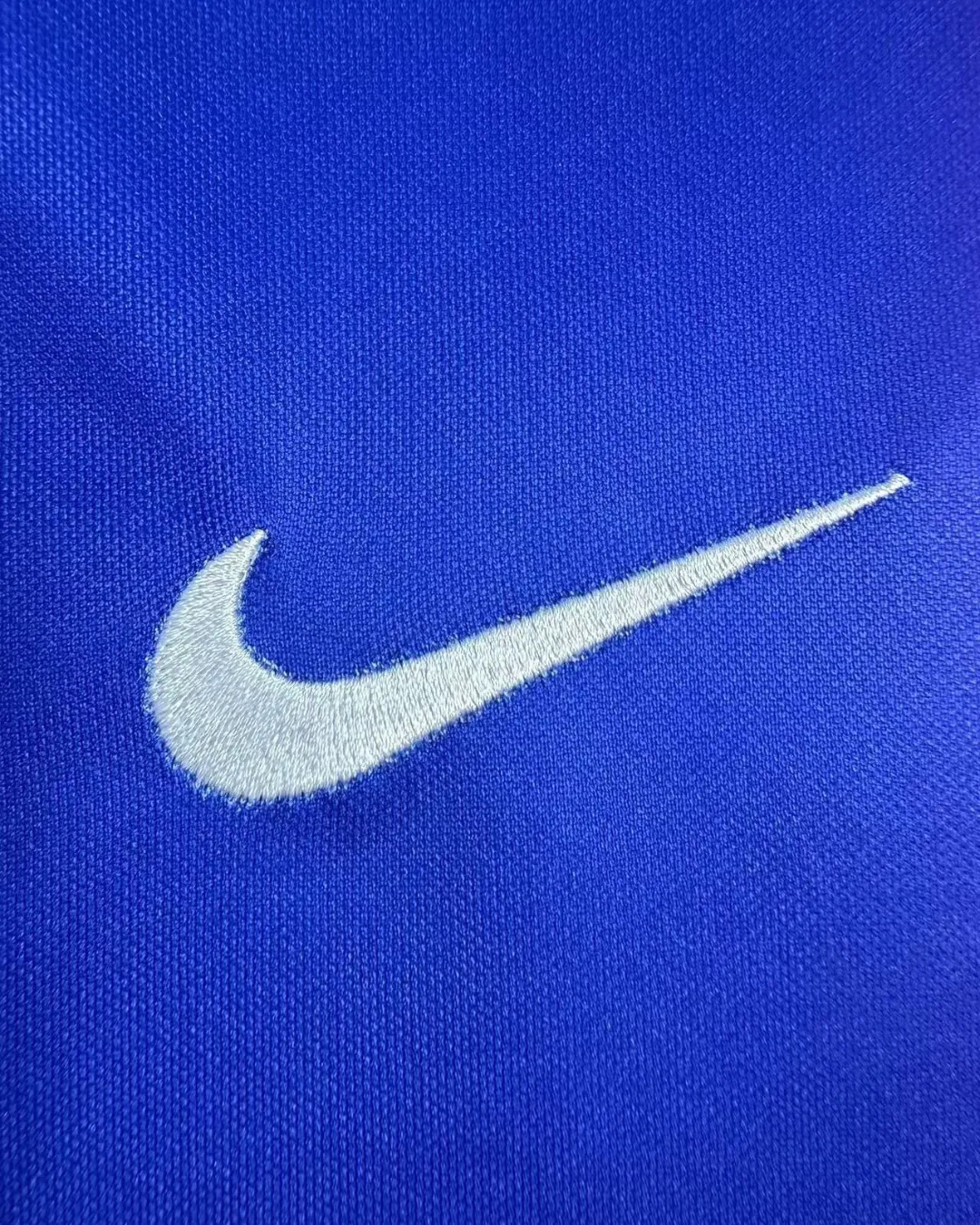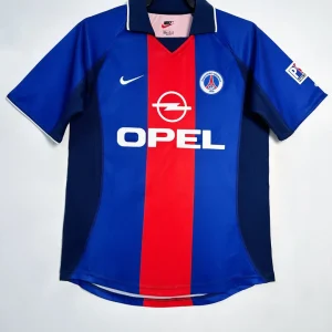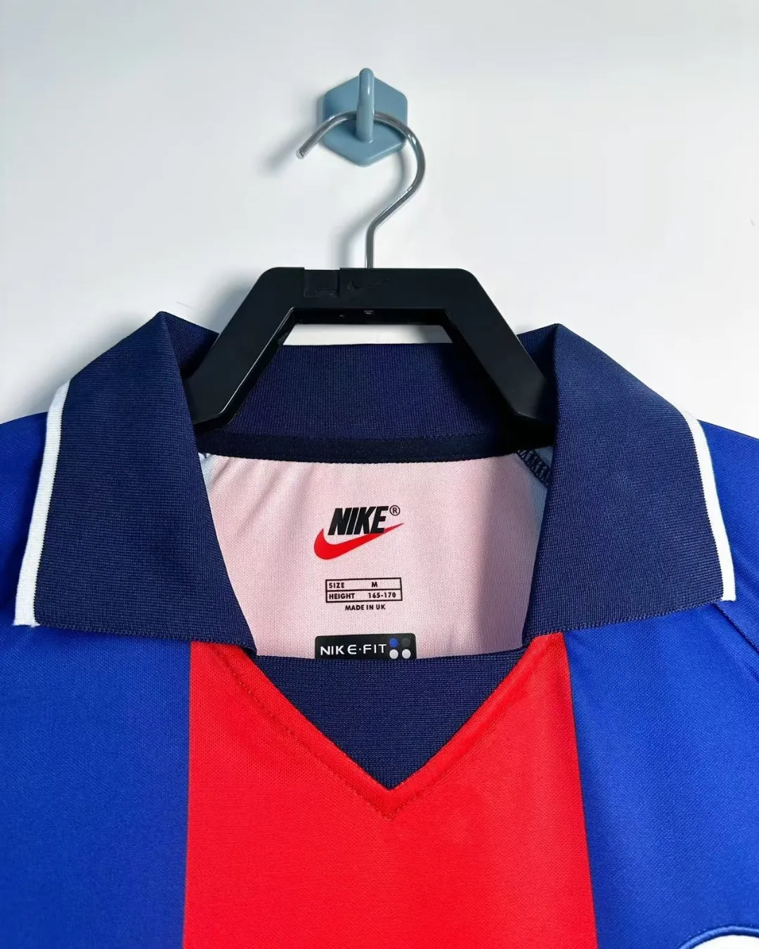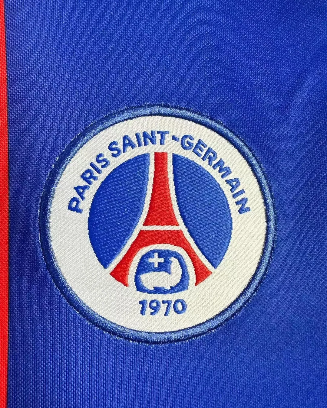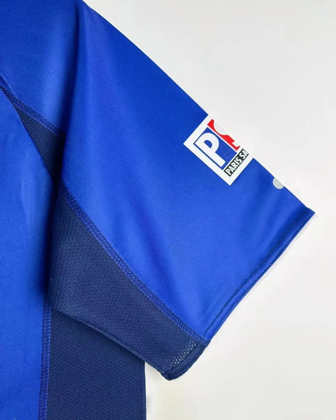 Relive Paris Saint-Germain’s competitive 2000/01 Ligue 1 campaign with this classic Home Jersey from Nike, worn during their push for European qualification at the Parc des Princes. The iconic navy blue and red vertical stripes feature a distinctive crew neck collar with white piping, paired with the embroidered PSG crest on the left chest and Nike swoosh on the right, capturing turn-of-the-millennium Parisian elegance. Made from 100% polyester Dri-FIT fabric, it offers lightweight moisture-wicking true to early 2000s performance standards.