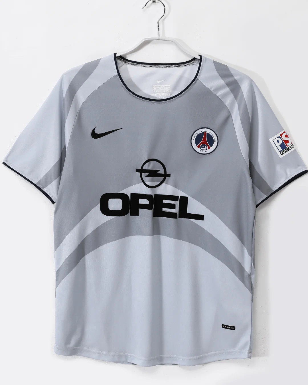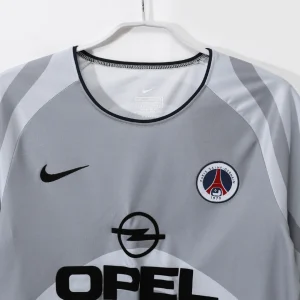 Celebrate a dynamic chapter in Paris Saint-Germain’s history with the PSG 2001/02 Away Jersey, a stylish and timeless kit that brings together elegance and performance. This jersey features a distinctive grey base with black accents, presenting a clean and striking look on the road.