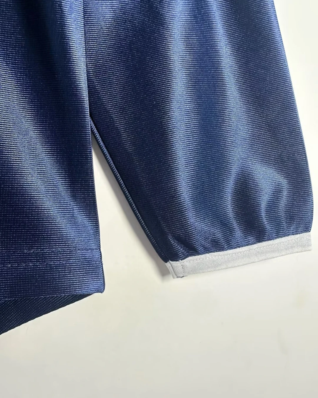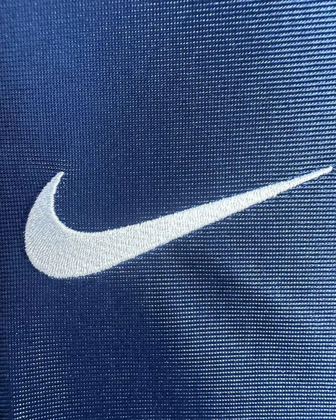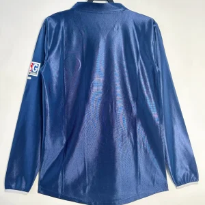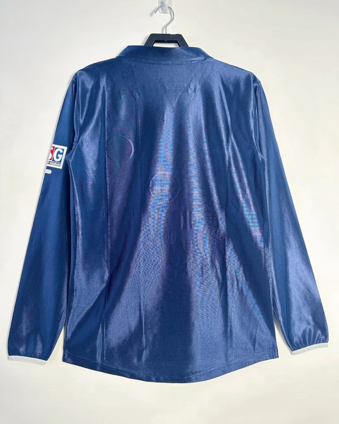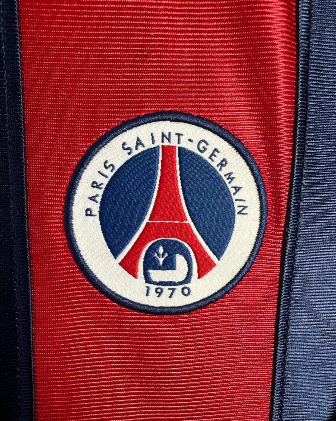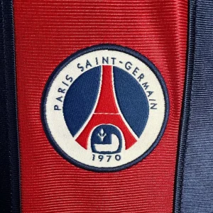 The PSG 01/02 Home Jersey is a classic retro football shirt that captures the iconic style of Paris Saint-Germain during the 2001-2002 season. Featuring a traditional navy blue base, this jersey is distinguished by a bold red vertical stripe on the left side and V-neck collar with white trim, an homage to the club’s signature “Hechter” design, originally created by fashion designer Daniel Hechter in the 1970s.