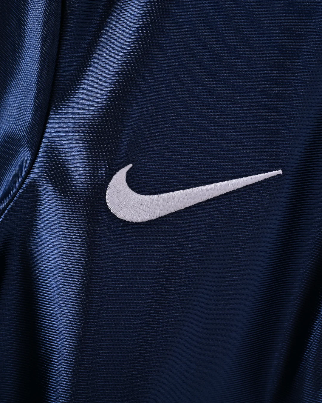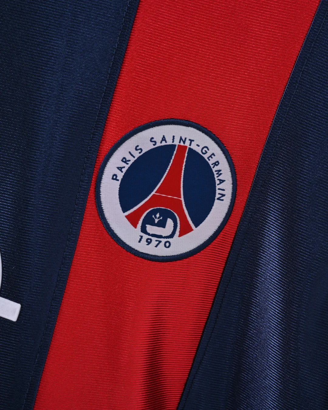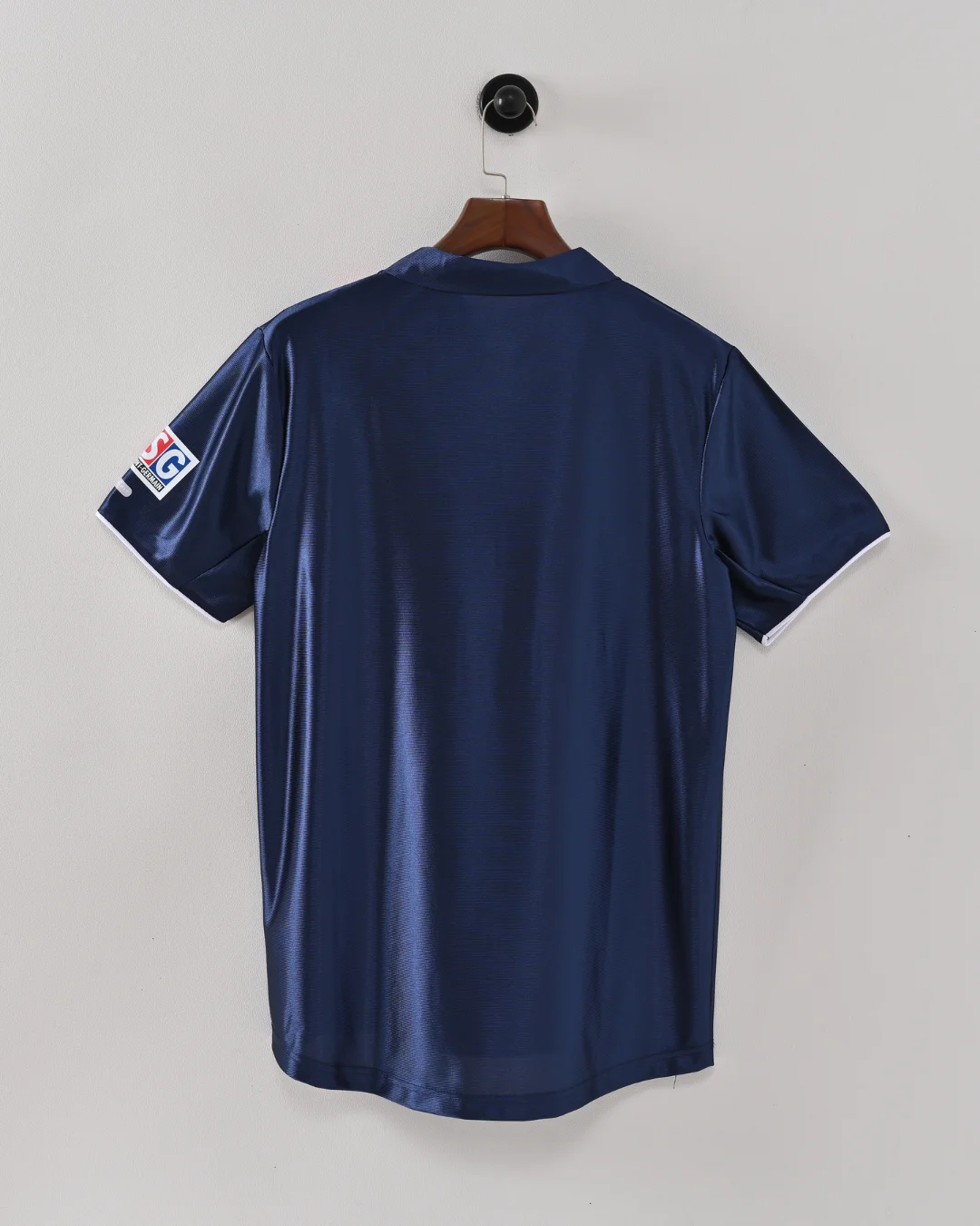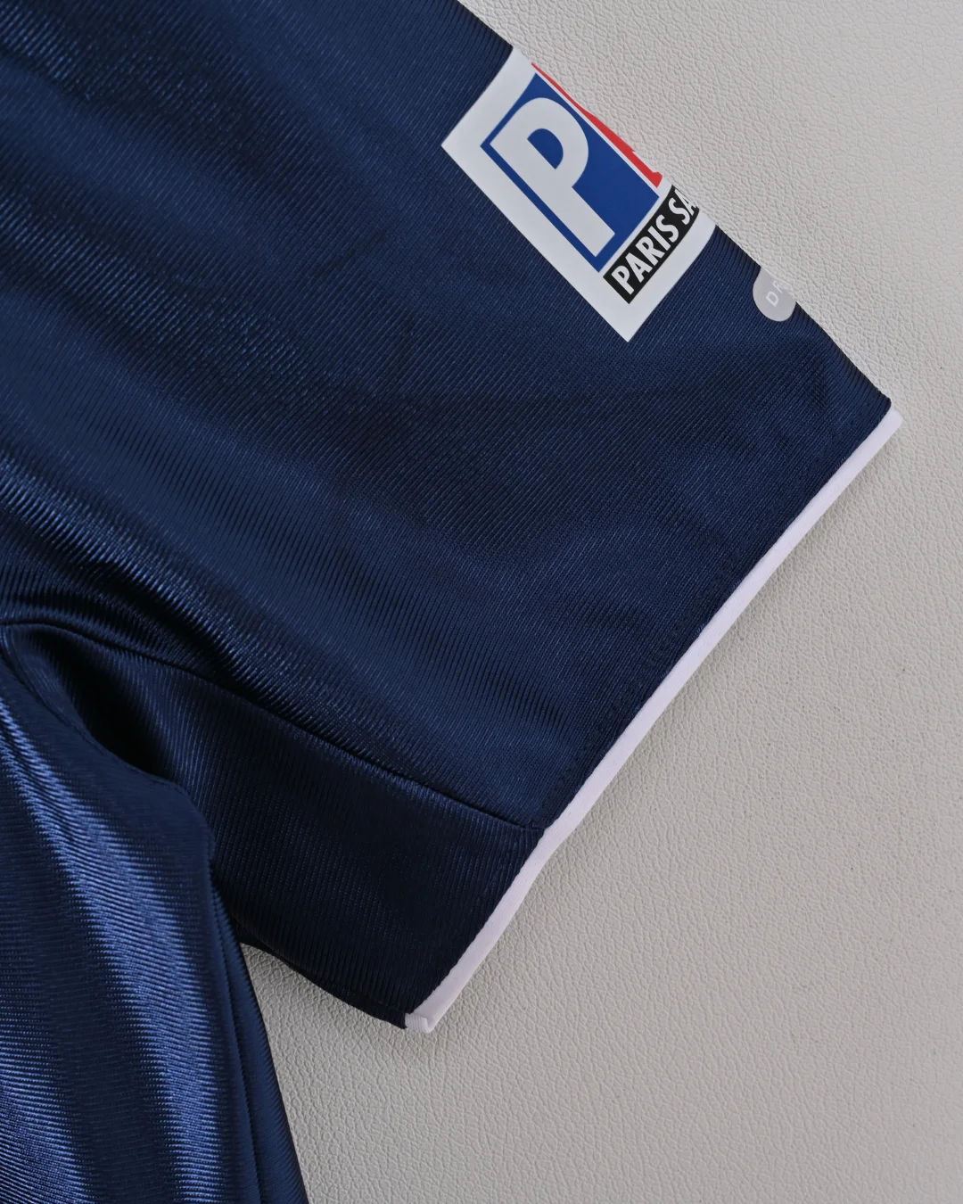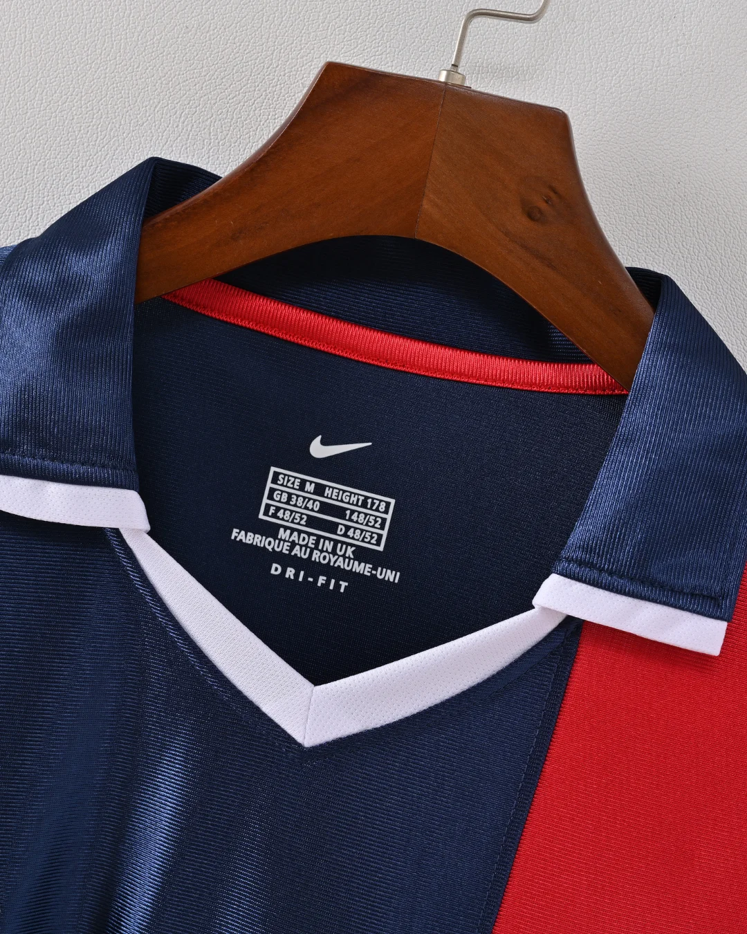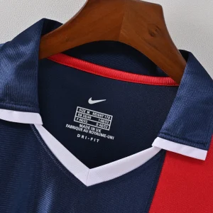 The PSG 01/02 Home Jersey is a classic retro football shirt that captures the iconic style of Paris Saint-Germain during the 2001-2002 season. Featuring a traditional navy blue base, this jersey is distinguished by a bold red vertical stripe down the center, flanked by slimmer white stripes on either side—an homage to the club’s signature “Hechter” design, originally created by fashion designer Daniel Hechter in the 1970s.