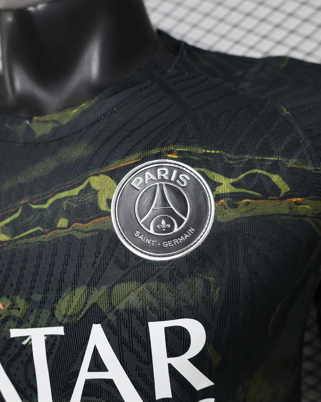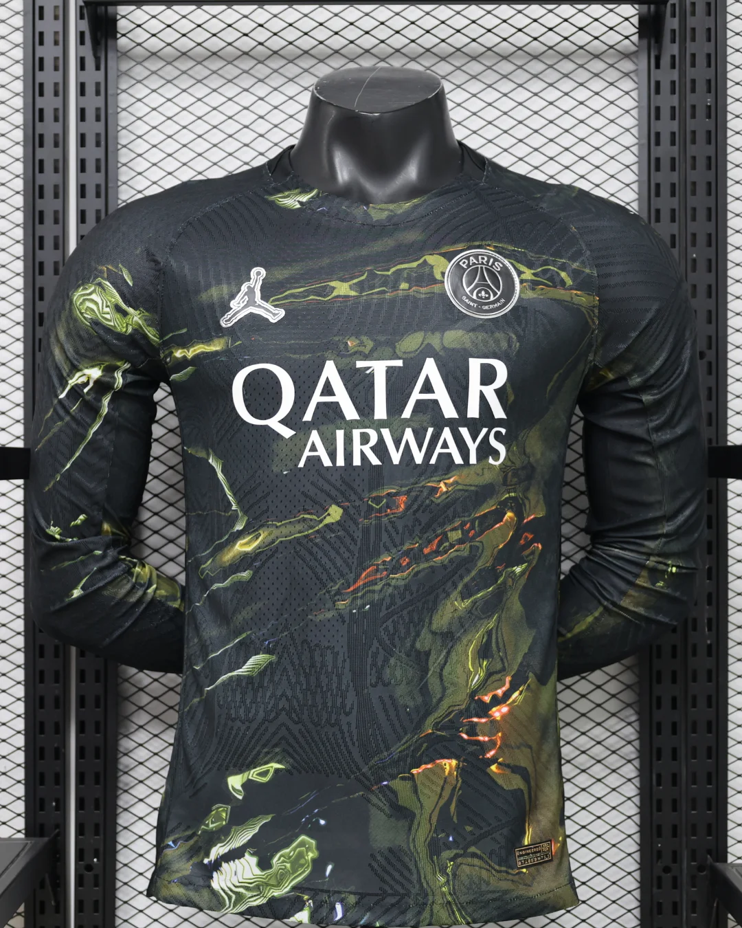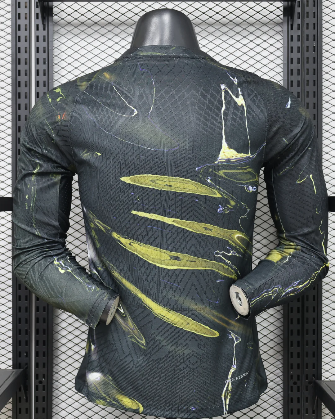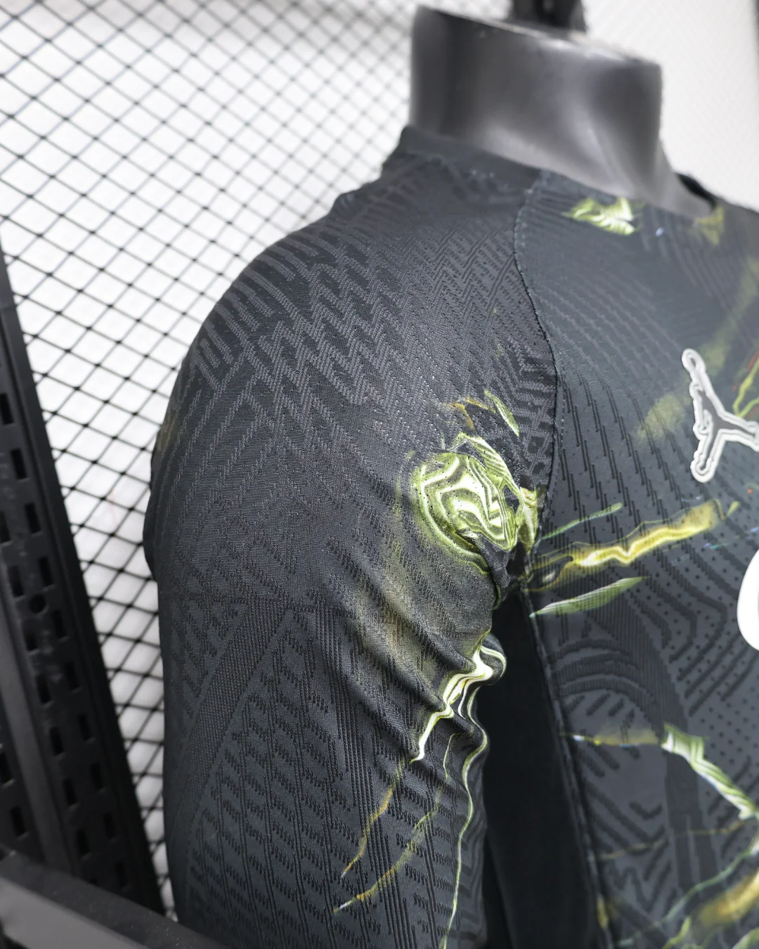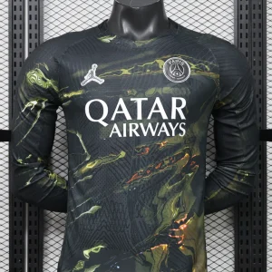 Step into the energy of Paris after dark with the Paris Saint-Germain 2026 Night Edition Authentic Jersey – Long Sleeve from Jordan. Dressed in a sleek black base with chrome-inspired multicolor reflections, the shirt is designed to capture the lights of the capital city and PSG’s futuristic, fashion-forward identity. Subtle reflective graphics and premium detailing give the jersey a standout look that feels both modern and unmistakably Parisian.
