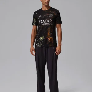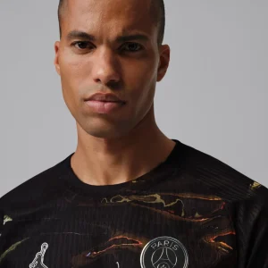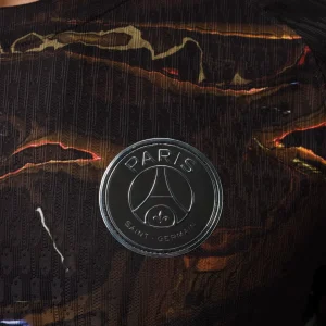Fuel PSG’s nocturnal dominance with the PSG 2026 Night Edition Authentic Jersey from Jordan x Nike. Dominated by a sleek black base with futuristic chrome print reflecting Paris’ City of Light glow at night, inspired by Trocadéro views, this special edition blends fluid graphics and metallic sheen to honor the innovative PSG-Jordan partnership. Engineered from 100% polyester with advanced Dri-FIT ADV technology, it offers elite breathability, lightweight quick-drying performance, and a slim authentic match fit identical to what the pros wear on the pitch. A modern crew neck and precise detailing ensure locked-in comfort during high-stakes action.