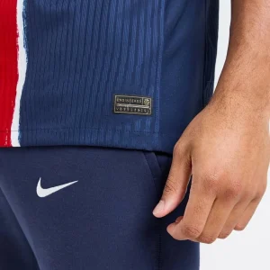 Constructed from premium performance fabric, it ensures unrivaled comfort and breathability, tailored to meet the demands of both the pitch and devoted supporters. The classic navy blue backdrop is adorned with the iconic red central stripe, subtly enhanced with intricate detailing that echoes PSG’s storied past