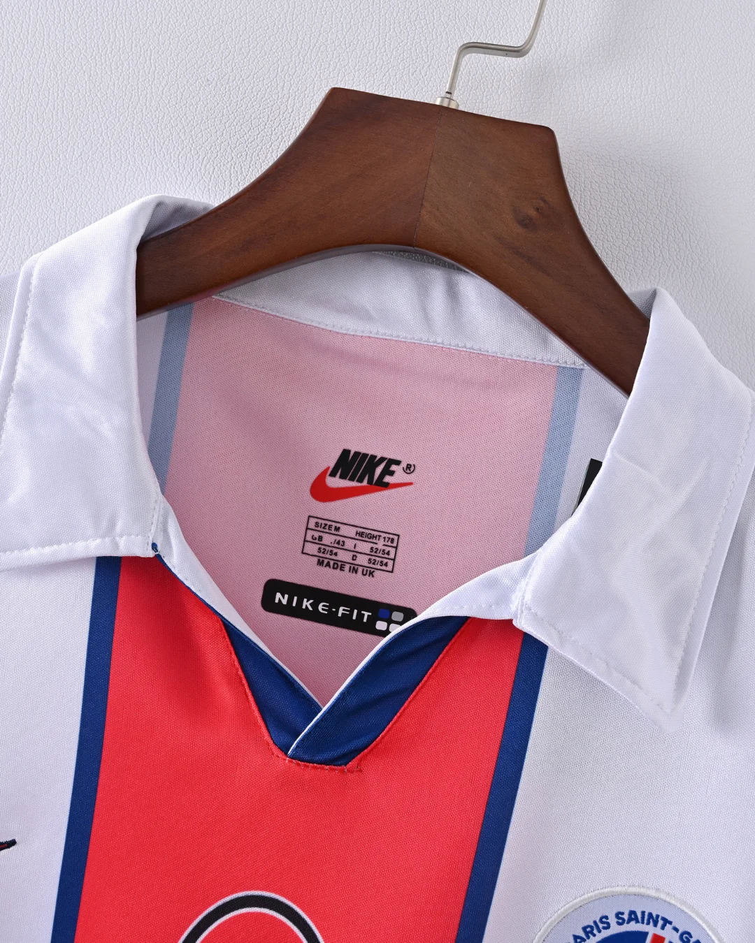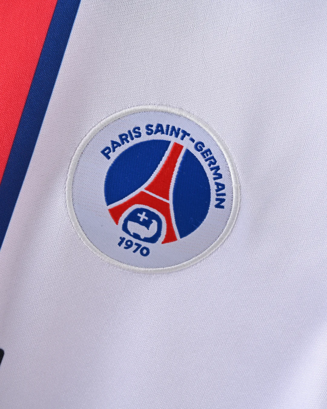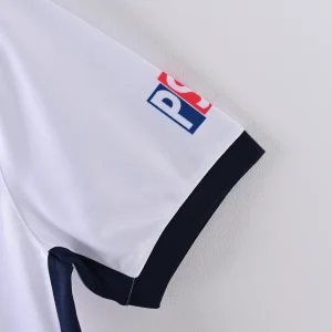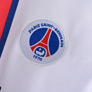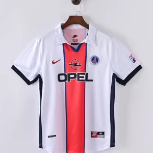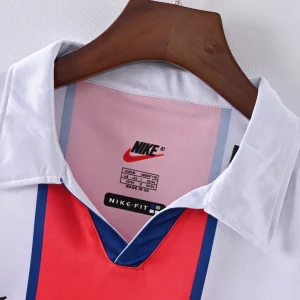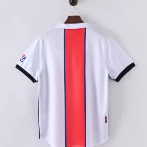 Celebrate Paris Saint-Germain’s iconic 1998/99 season with the classic PSG 98/99 Away Jersey, a stylish retro kit that embodies the spirit and flair of the club during this memorable era. This jersey features a crisp white base color with a bold vertical red stripe framed by blue borders running down the center, a striking design that captures PSG’s distinctive identity.