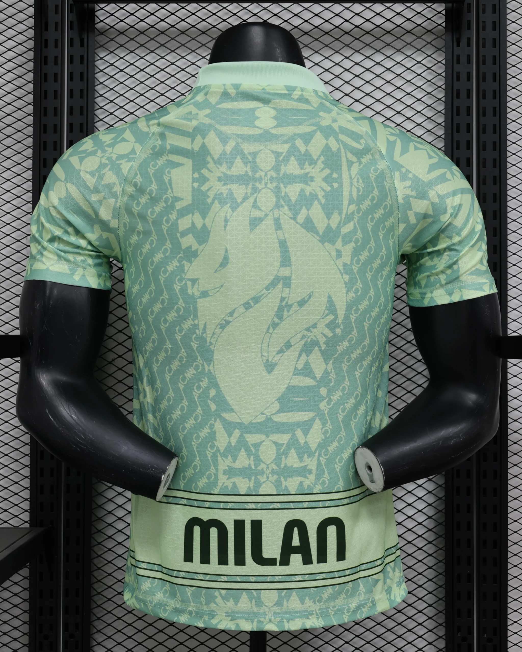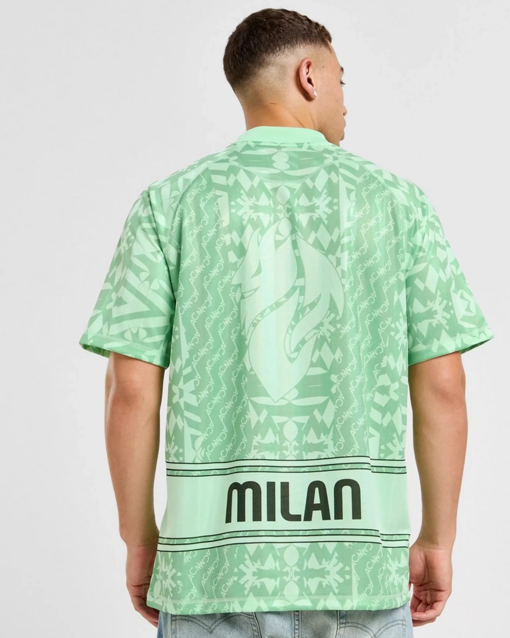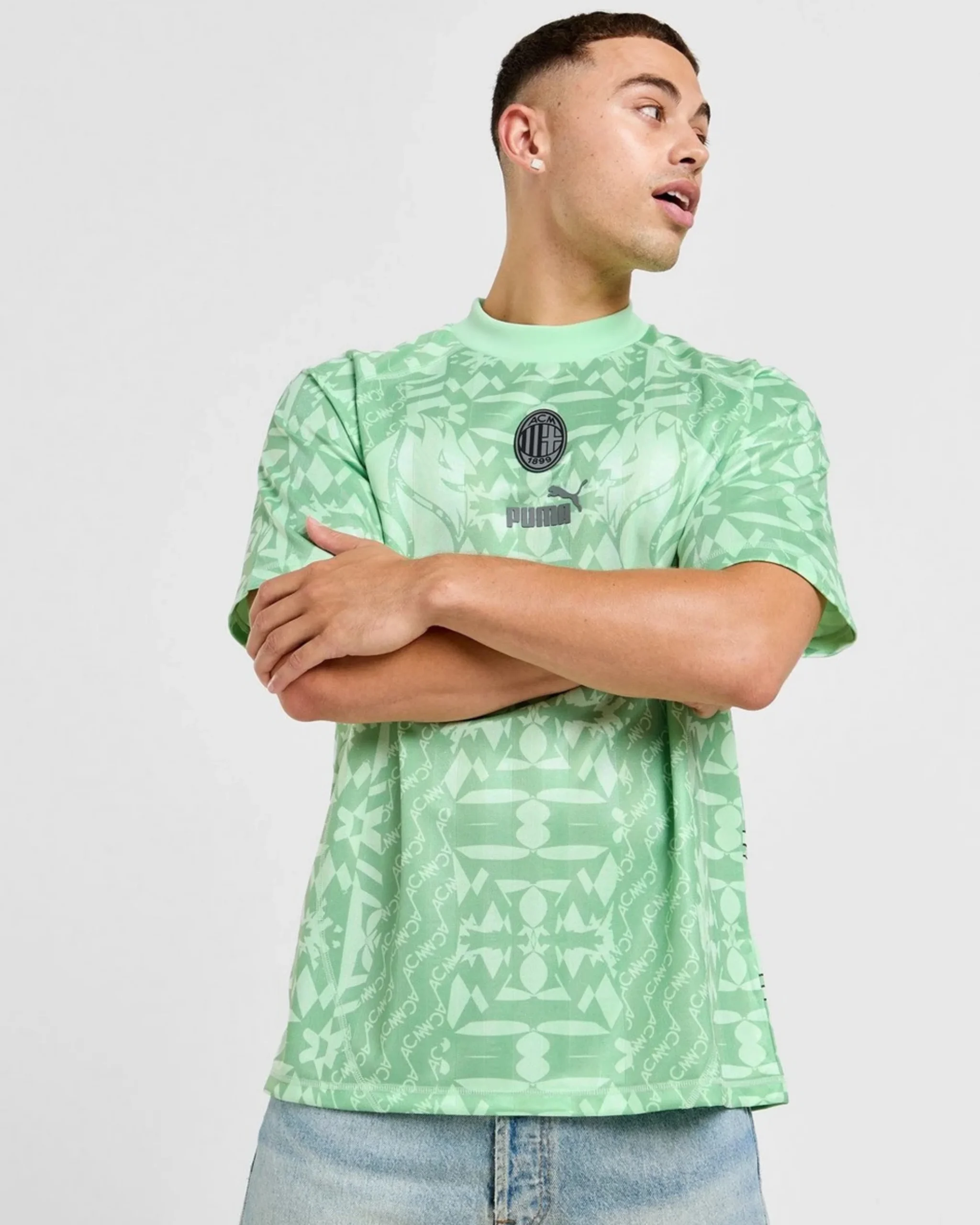 Pull on head-turning support for your side with this men’s AC Milan Retro Shirt from PUMA. In a Mint Green colourway with a tonal vintage pattern, this classic-inspired top has a thick crew neckline and raglan-cut sleeves for a roomy shape. It’s made from smooth polyester fabric for cool and lightweight comfort on matchdays. Finished with a bold Milan wordmark on the back and the PUMA Cat and AC crest to the centre of the chest.