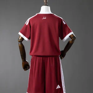 The Qatar Kids 2026 WC Home jersey features the national team’s signature maroon look, paired with white details and a zig-zag central design inspired by the Qatari flag. It reflects Qatar’s traditional identity in a clean adidas template, with a white crew collar, matching sleeve cuffs, and subtle tonal texture for a modern match-day feel. Made for young supporters, this youth jersey is designed with breathable, comfortable fabric and a crew neckline that makes it easy to wear for football, training, or everyday support.