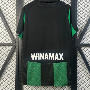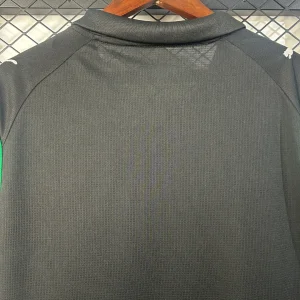 Show your support for Les Sang et Or with the Puma RC Lens 25/26 Away Stadium Jersey, a striking tribute to the club’s history and local heritage. This season’s away kit features a sleek black base color highlighted with bold green stripes running vertically on the front, paying homage to the kiosk on Place Verte, now known as Place de la République, located near the club’s stadium. The design incorporates subtle geometric patterns within the green stripes, adding unique texture and visual depth.