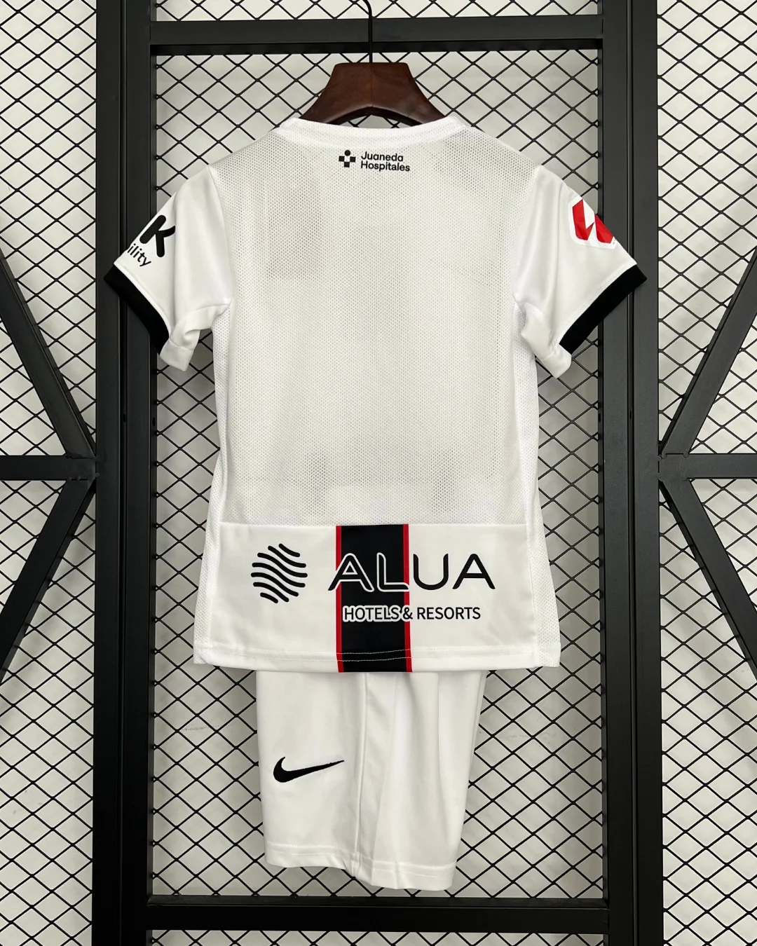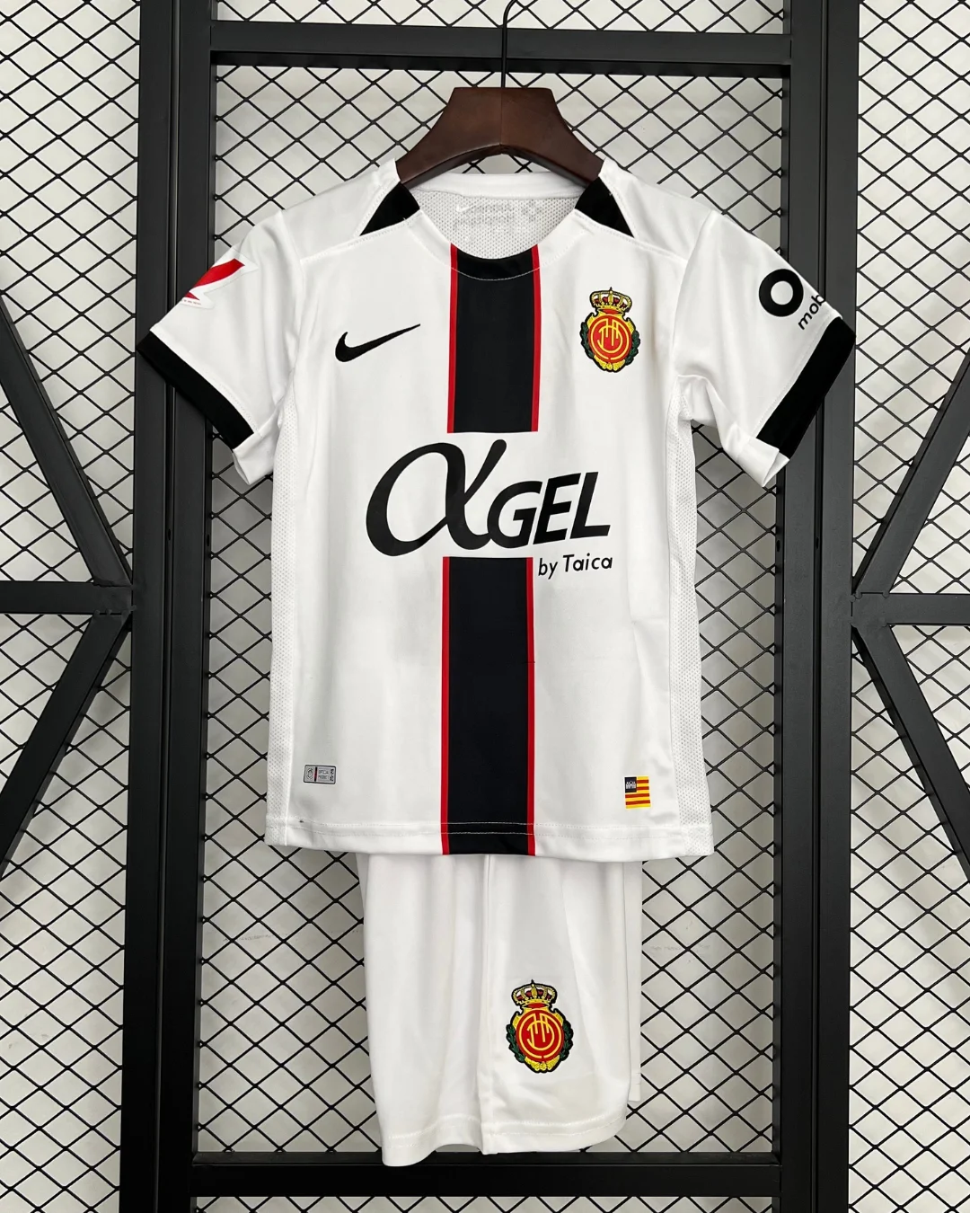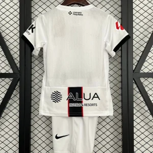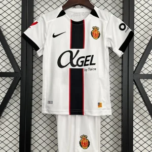 Support young talents in style with the Nike RCD Mallorca Kids 25/26 Away Kit, capturing the island’s fiery passion and modern energy for the 2025/26 season. The kit showcases a predominantly white base featuring a bold vertical center stripe in black outlined by thin red stripes, mirroring the design of the home kit but in an alternative colorway. Subtle tonal patterns and accents give this jersey a fresh, dynamic look that respects Mallorca’s heritage.