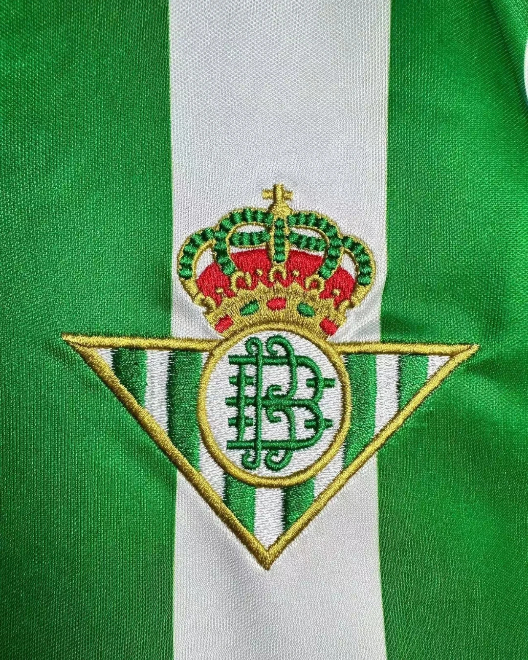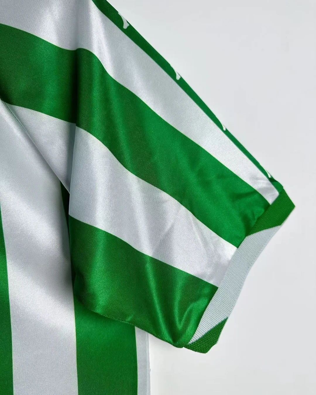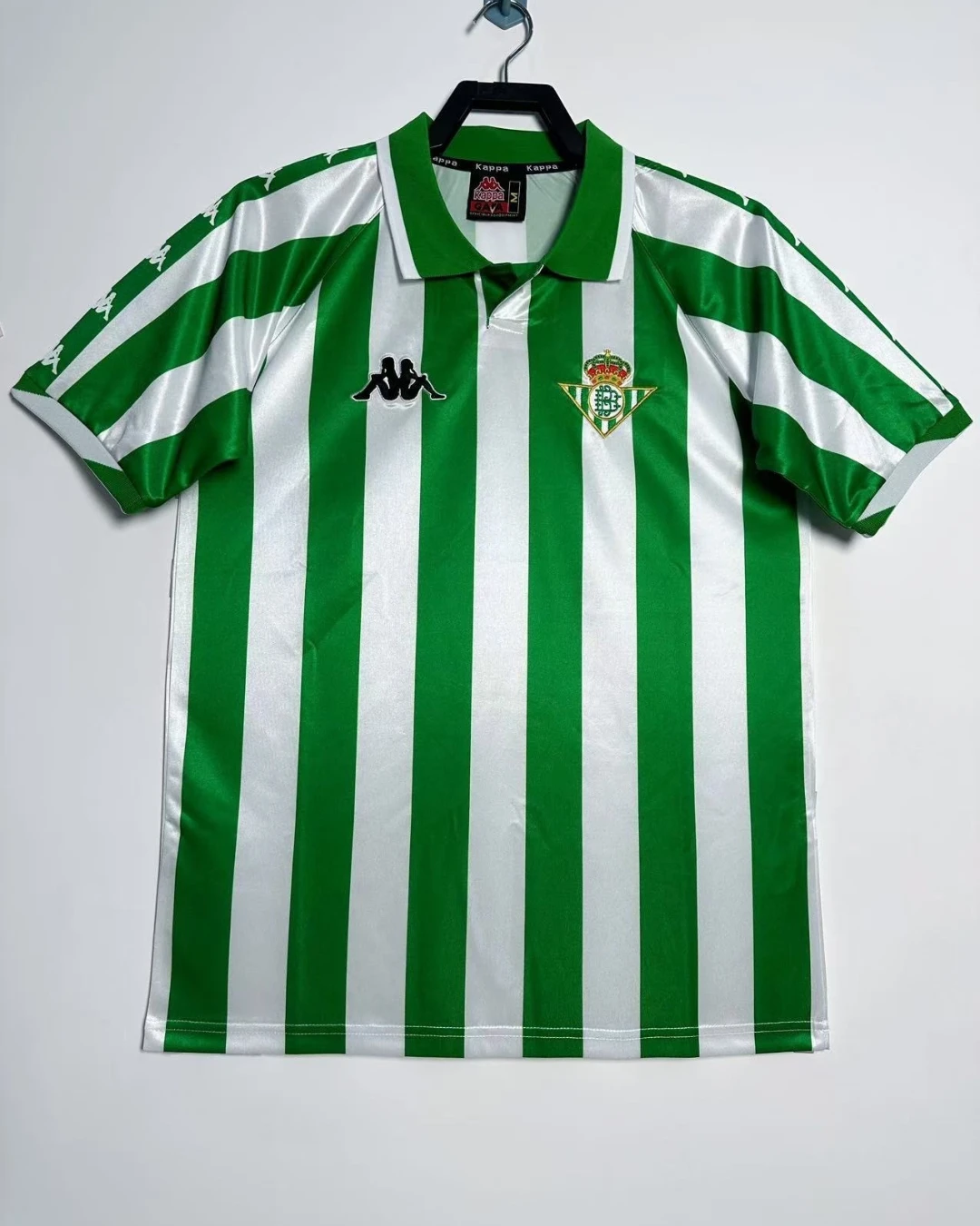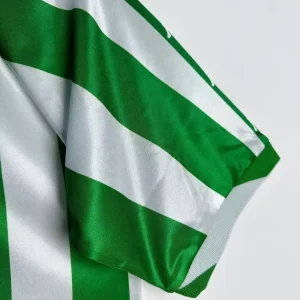 Real Betis Balompié’s classic 2000/02 Home Jersey from Kappa powered their passionate La Liga campaigns at the Estadio Benito Villamarín, worn by Sevilla derby heroes like Joaquín, Demba Savaré, and Finidi during competitive mid-table battles under coaches like Luis Oliver. The iconic green and white vertical stripes feature a distinctive polo collar with button placket, Kappa’s stylish logo on the right chest and embroidered Bético crest opposite, quintessential Andalusian design celebrating the club’s fervent thirteen stripes tradition.