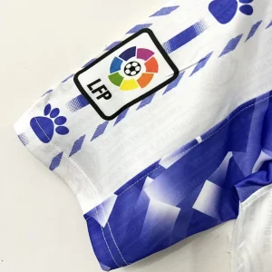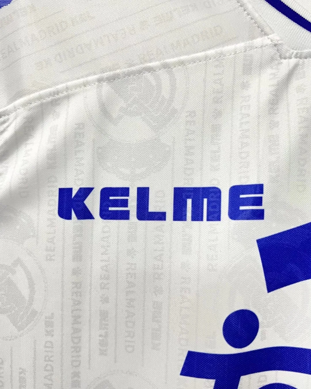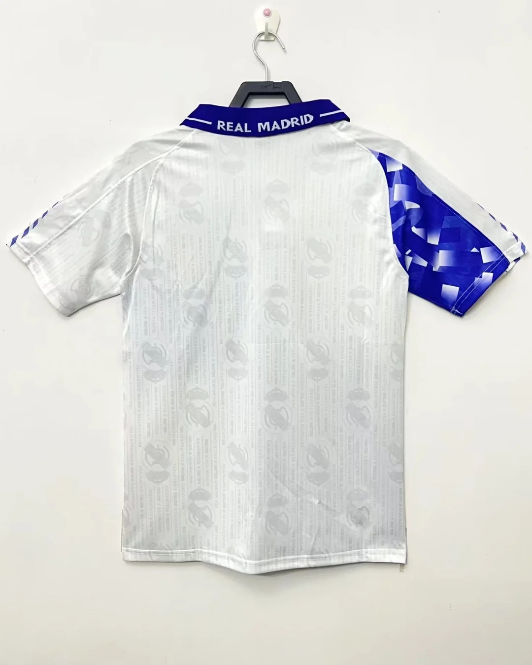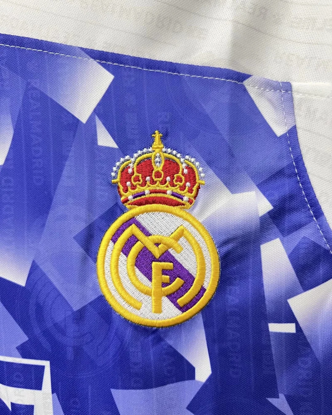 Relive one of Real Madrid’s most distinctive 1990s shirts with the Real Madrid 96/97 Third Jersey, a bold Kelme design worn during the club’s memorable 1996/97 La Liga-winning season. The jersey is instantly recognisable for its white base, purple geometric graphic panels, and all-over paw-print trim, with the Teka sponsor and club crest completing the classic mid-90s look. Its unusual colorway and striking pattern make it a true collector’s piece for Madridistas and retro football fans alike.