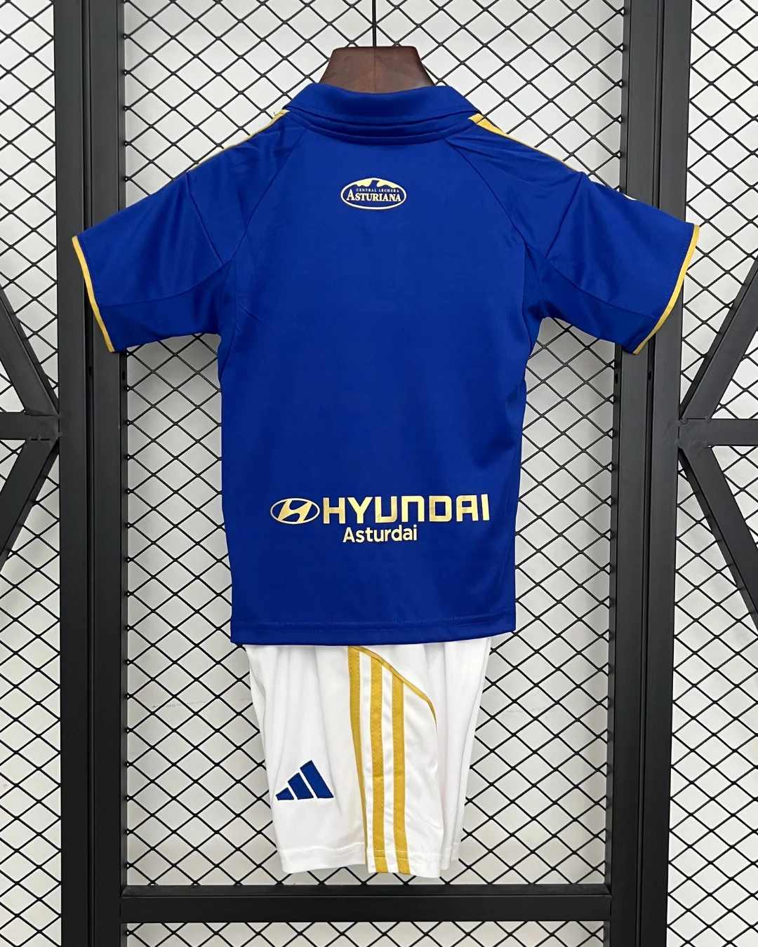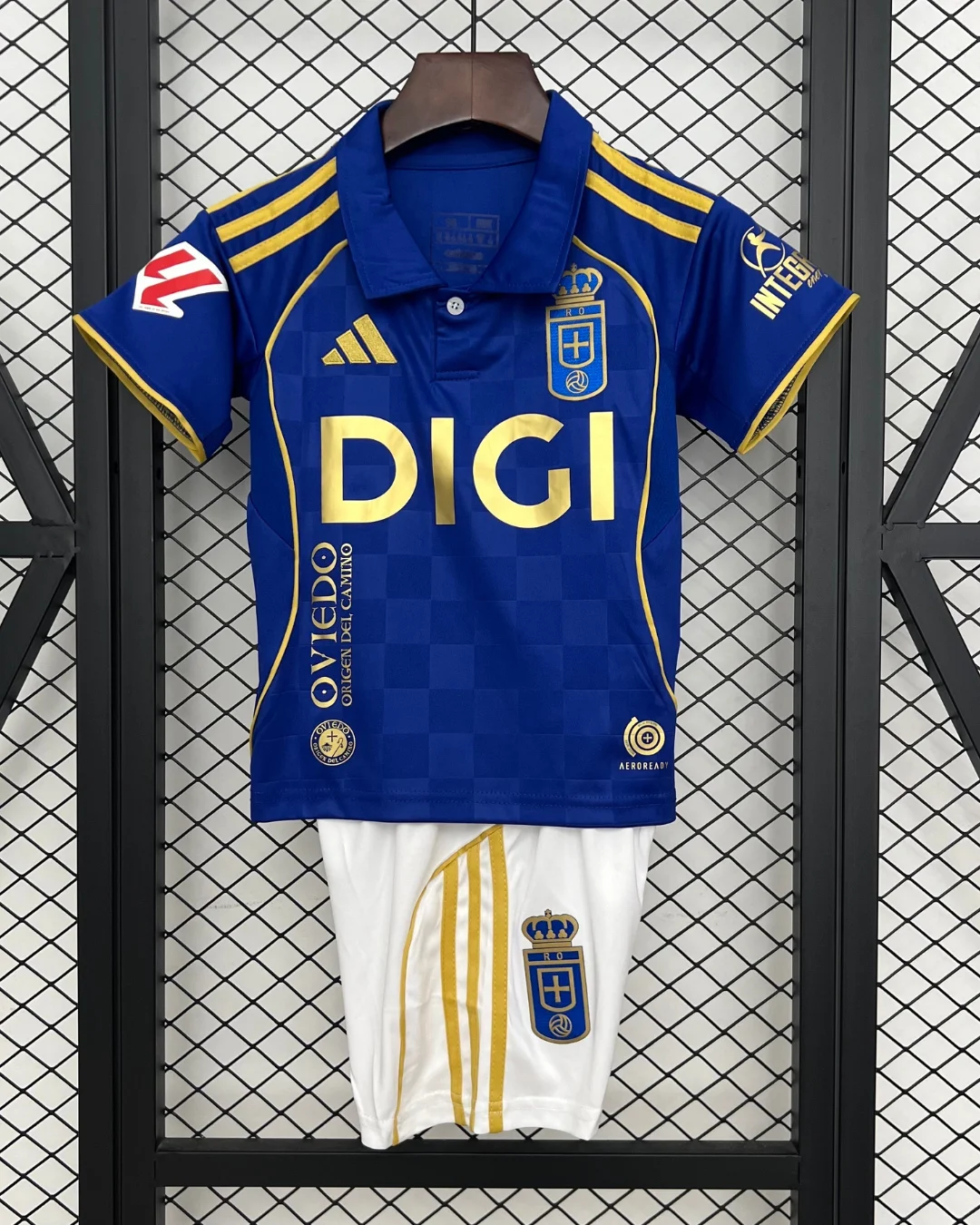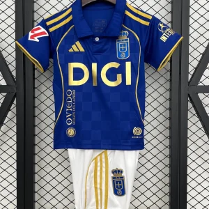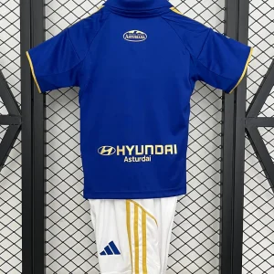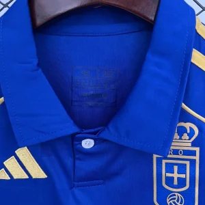 Celebrate Real Oviedo’s rich football heritage with the adidas Real Oviedo Kids 25/26 Home Kit, designed to honor the club’s centenary and its triumphant return to La Liga after two decades. This kit features the traditional royal blue base, described by the club as the “Blue of history,” complemented by elegant gold details symbolizing the “Gold of glory.” A smart polo collar, gold Adidas three stripes on the shoulders, and subtle checkered embossing add texture and depth to the design.