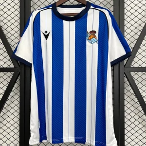 Support La Real with the Macron Real Sociedad 25/26 Home Stadium Jersey, a perfect blend of tradition and modern design that celebrates the club’s Basque roots and youthful spirit. This season’s home kit features the classic blue and white vertical stripes that define Real Sociedad’s identity, now enhanced with a textured clash print combining the club’s signature blue with a brighter shade for added vibrancy and depth. The shirt incorporates white panels on the sides and underarms for contrast and optimal breathability.